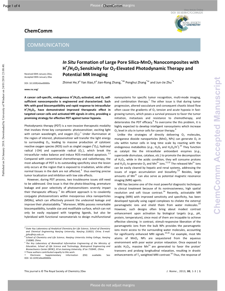 具有H /H2O2敏感性的O2- 升高的光动力治疗和潜在MR成像的大孔二氧化硅-MnO2纳米复合物的原位形成