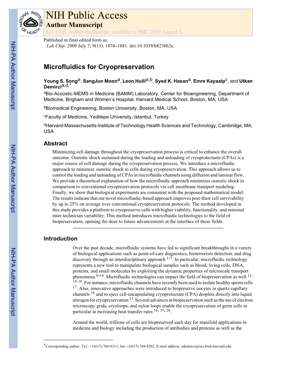 Young S. Song, Sang Jun Moon, Leon Hulli, Syed K. Hasan, Emre Kayaalp, and Utkan Demirci.