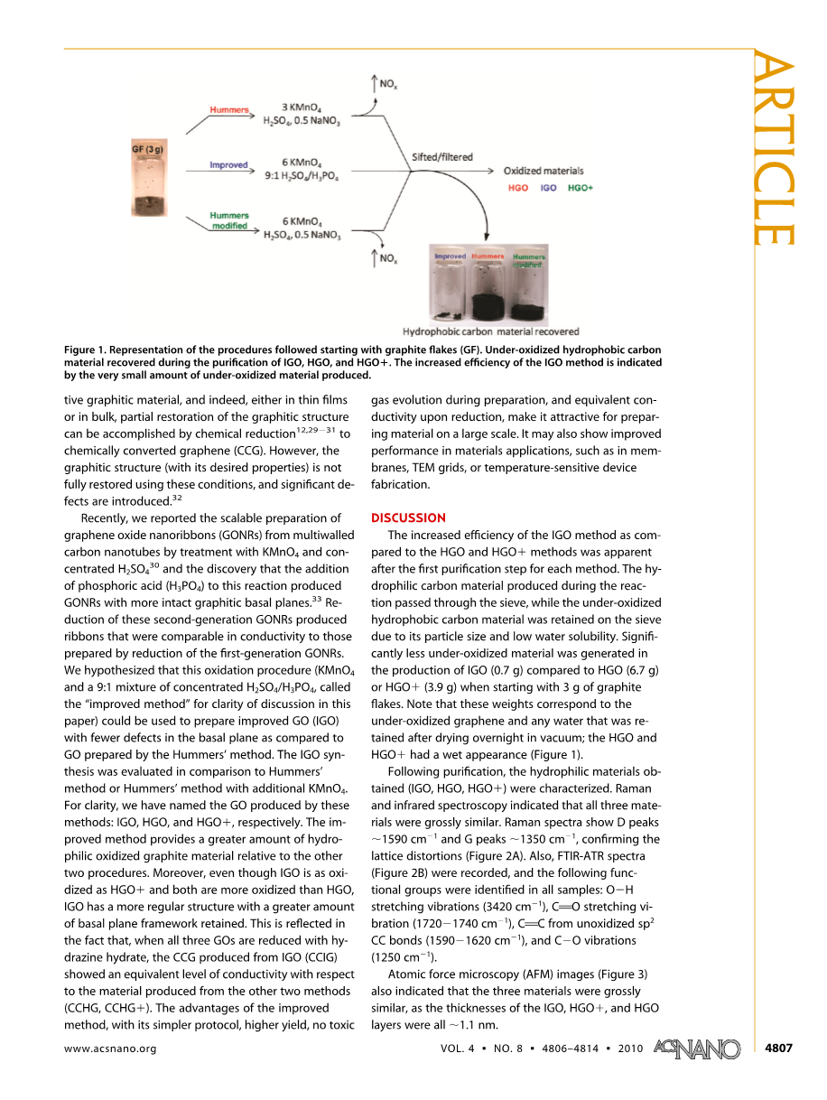 图1.从石墨片(GF)开始的过程的表示。 在纯化IGO,HGO和HGO 期间回收的欠氧化的疏水性碳材料。 IGO方法的效率提高表现为所产生的少量欠氧化材料。