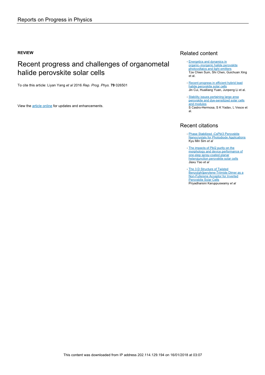 有机金属卤化物钙钛矿太阳能电池的最新进展和挑战