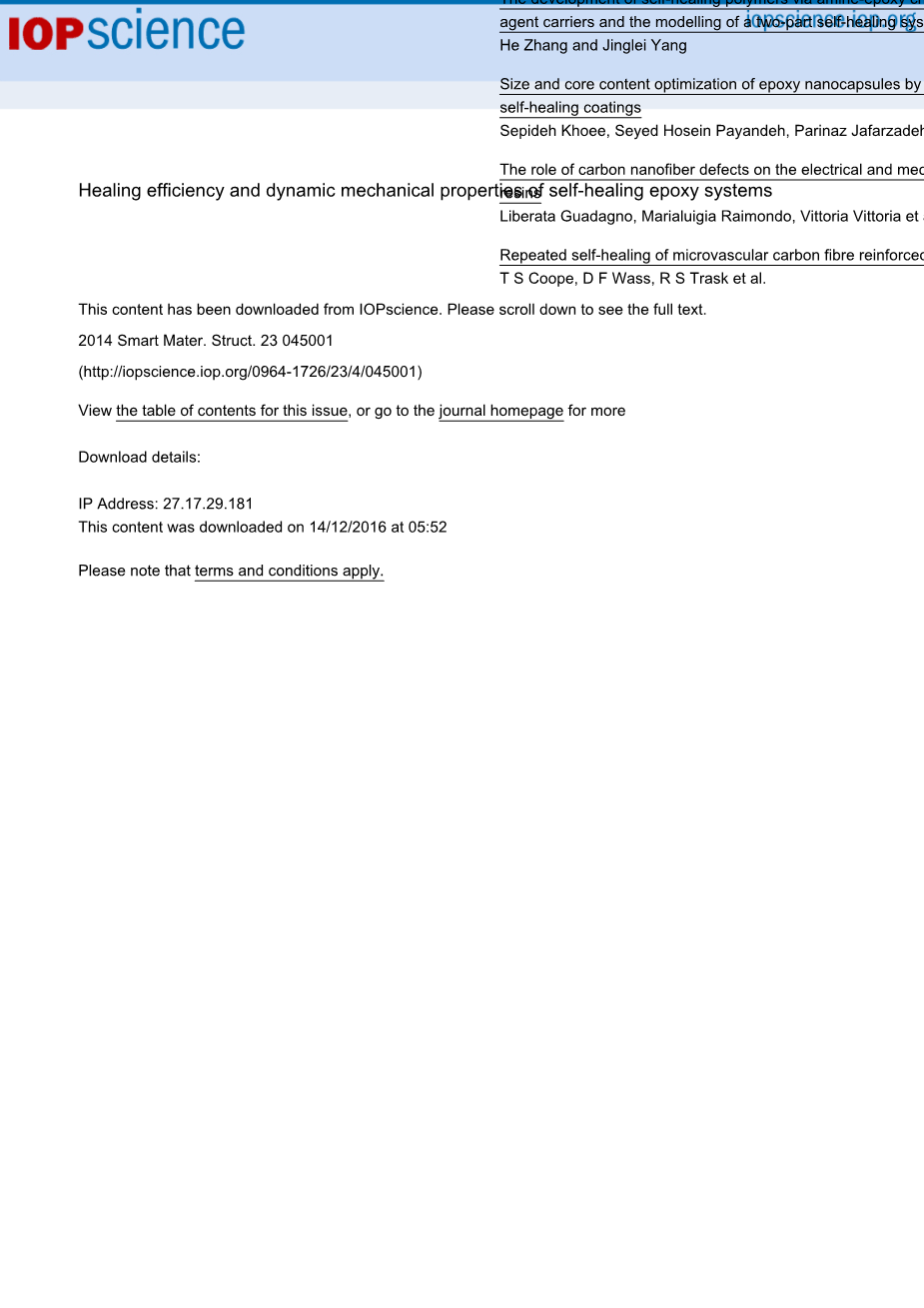 通过使用锥形双悬臂梁(TDCB)试样的现场试验,进行了第二种类型的试验来控制自修复功能。