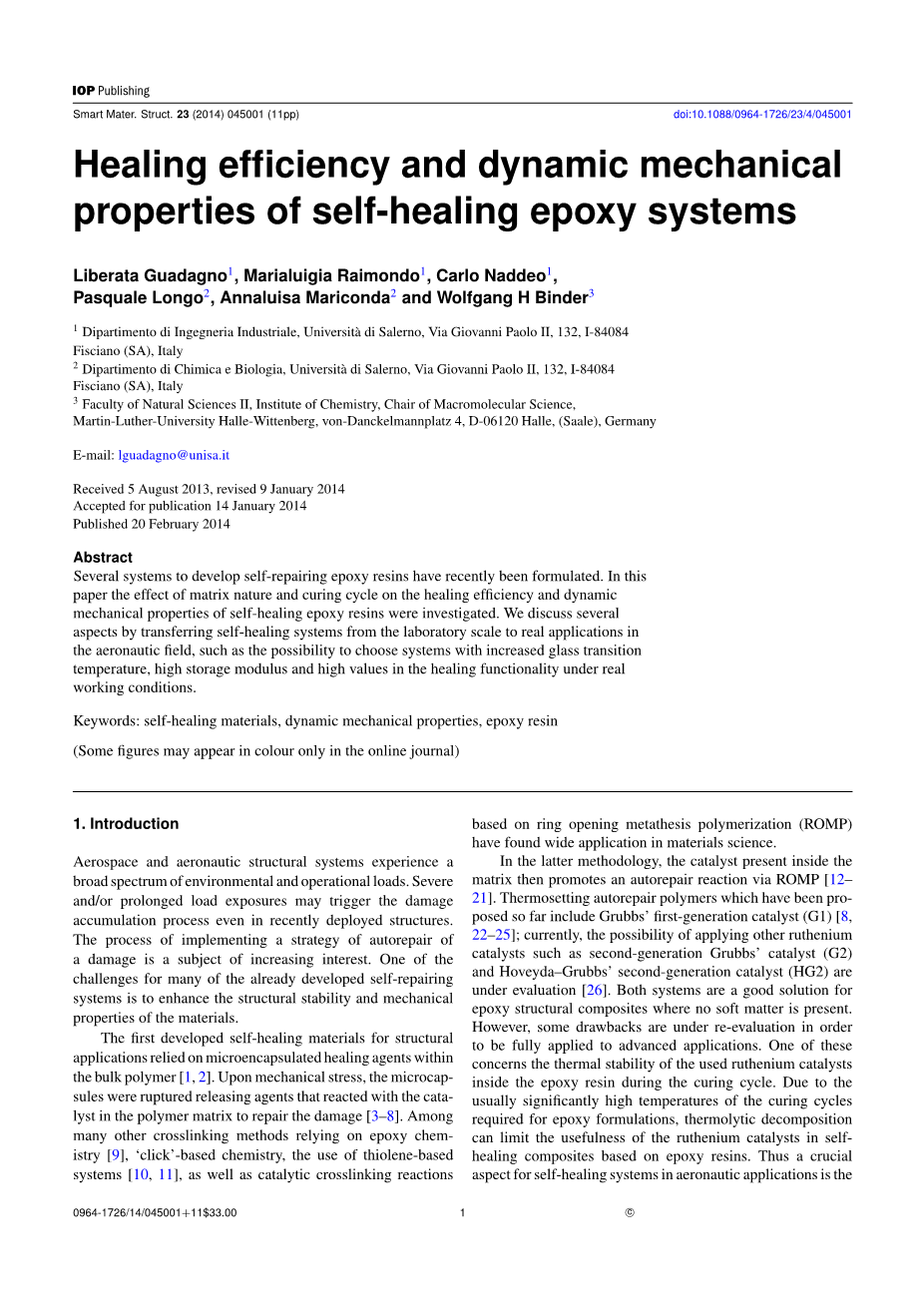 Liberata Guadagno, Marialuigia Raimondo, Carlo Naddeo, Pasquale Longo, Annaluisa Mariconda , Wolfgang H Binder