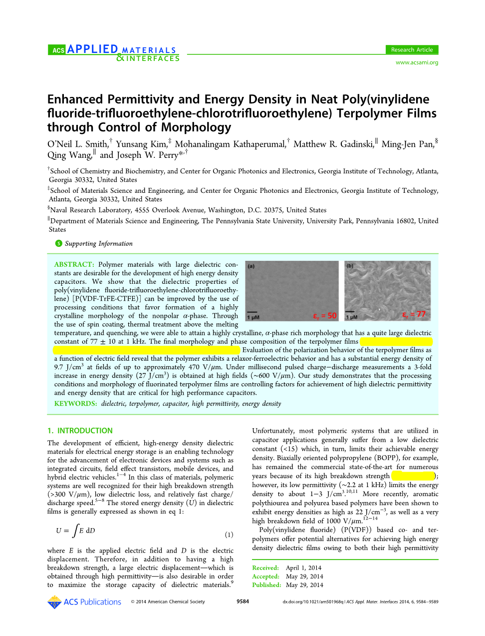 Orsquo; Neil L. Smith,dagger; Yunsang Kim,Dagger; Mohanalingam Kathaperumal,dagger; Matthew R. Gadinski,∥ Ming-Jen Pan,sect; Qing Wang,∥ and Joseph W. Perry*,dagger;