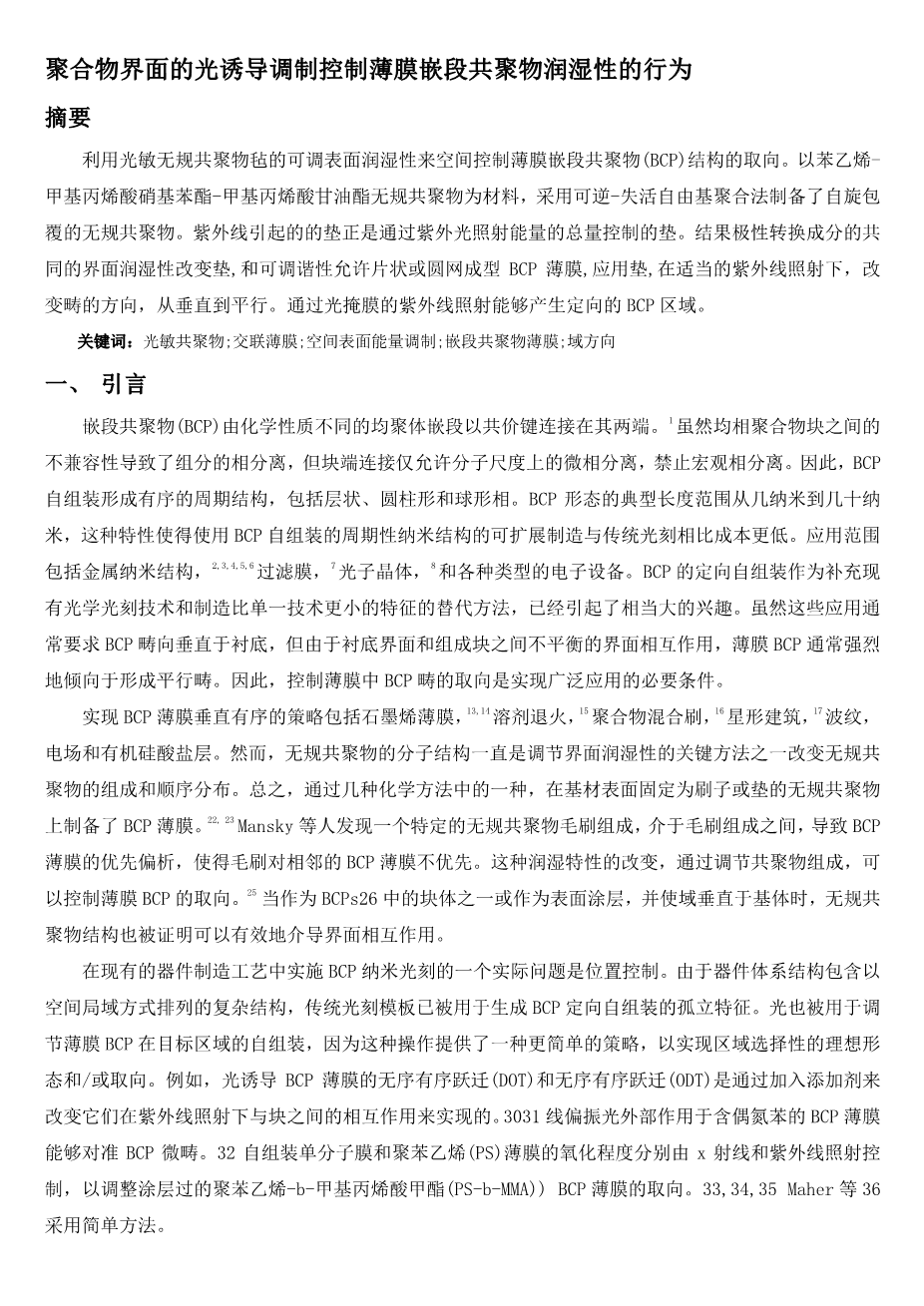 - 新型偶氮苯基两亲性共聚物:合成、自组装行为和多刺激响应特性外文翻译资料