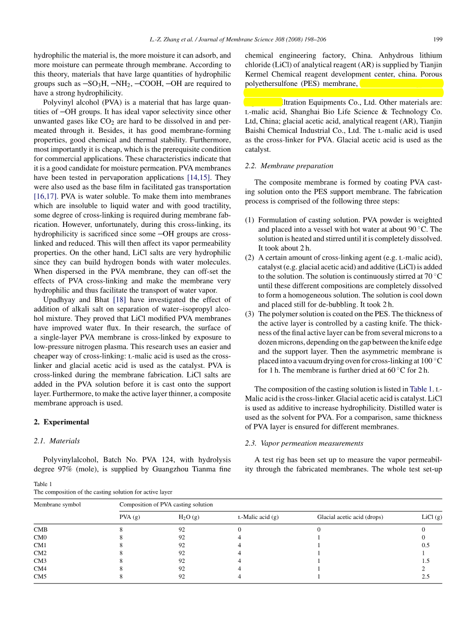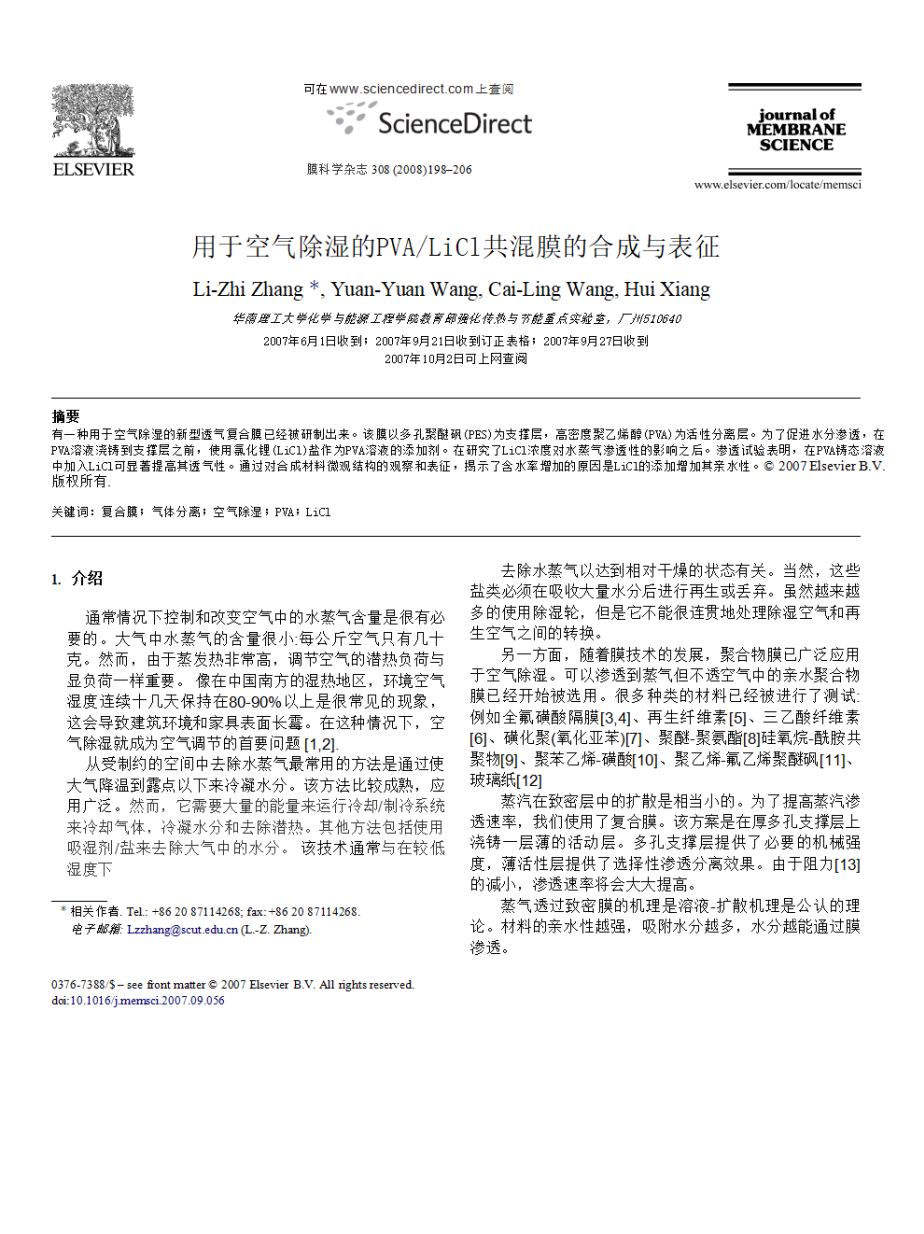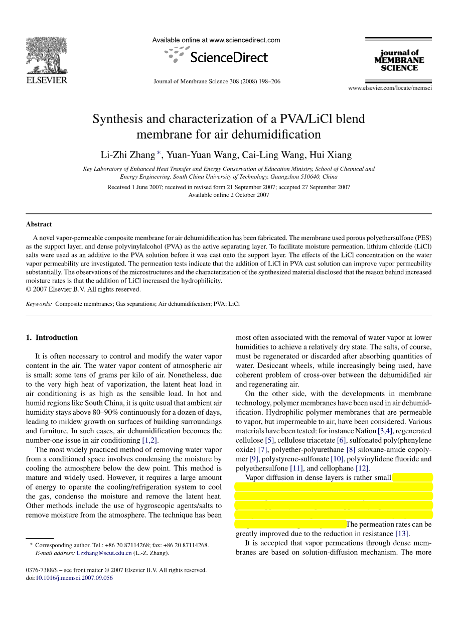用于空气除湿的PBA/LiC1共混膜的合成与表征外文翻译资料