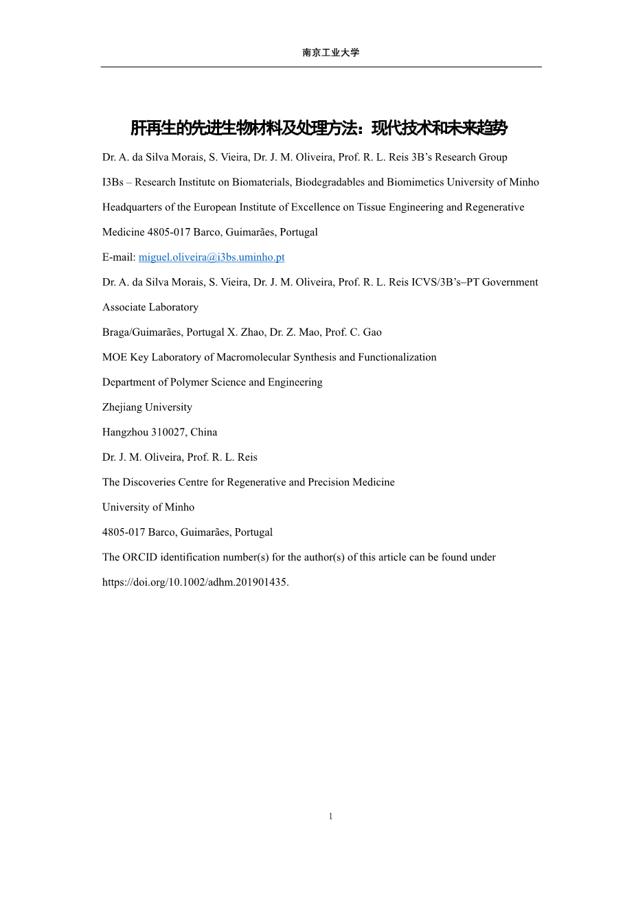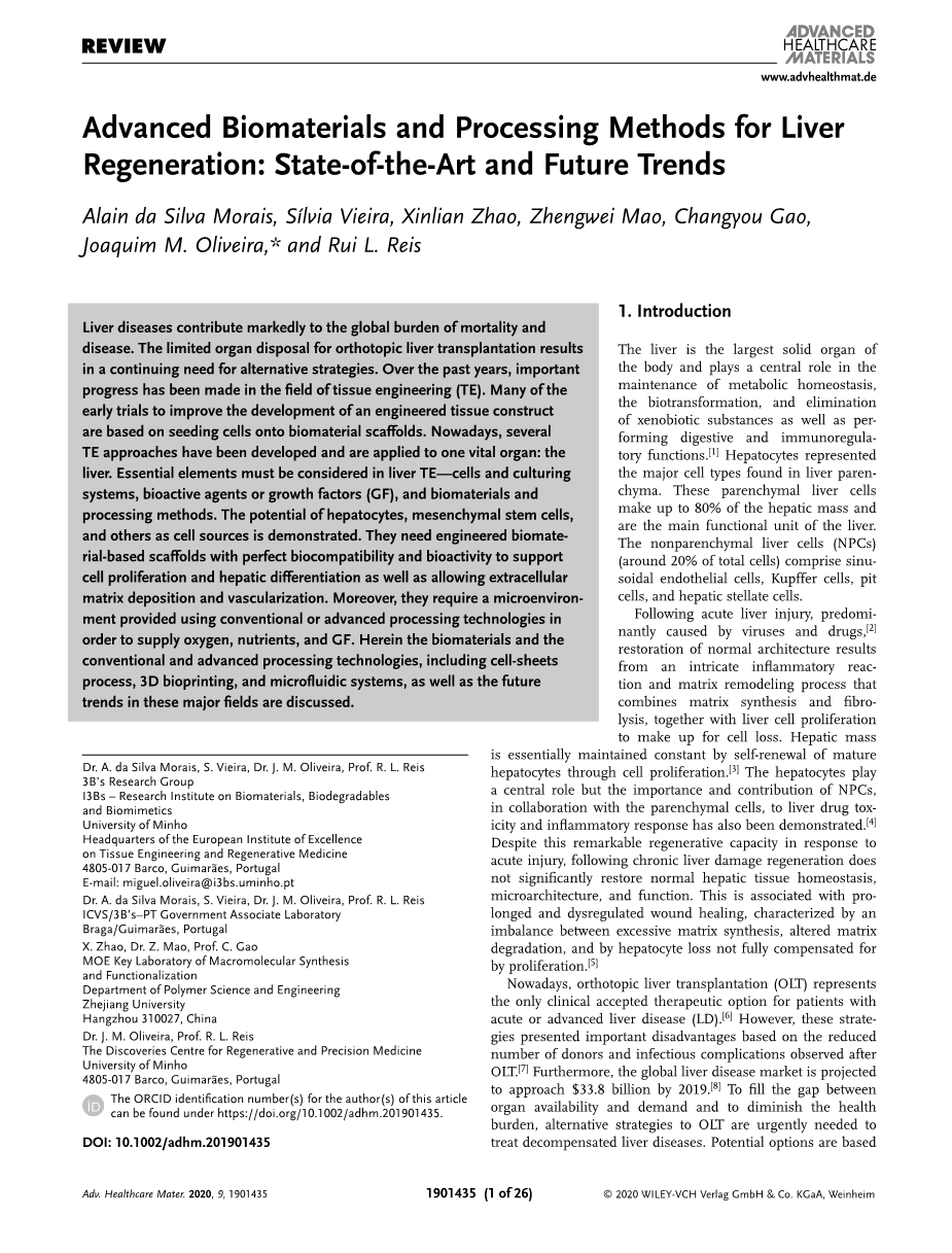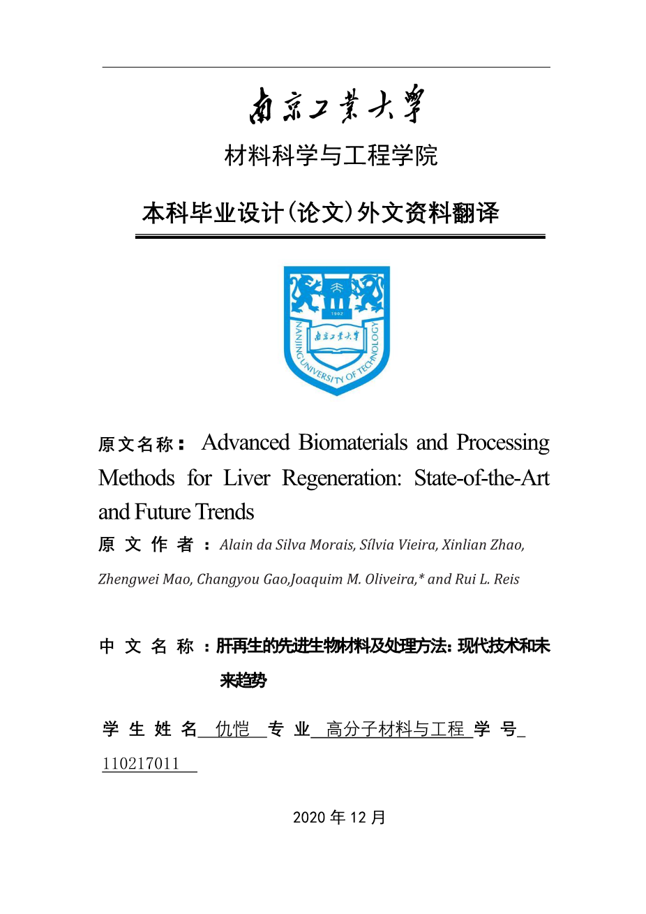 肝再生的先进生物材料及处理方法“现代技术和未来趋势”外文翻译资料