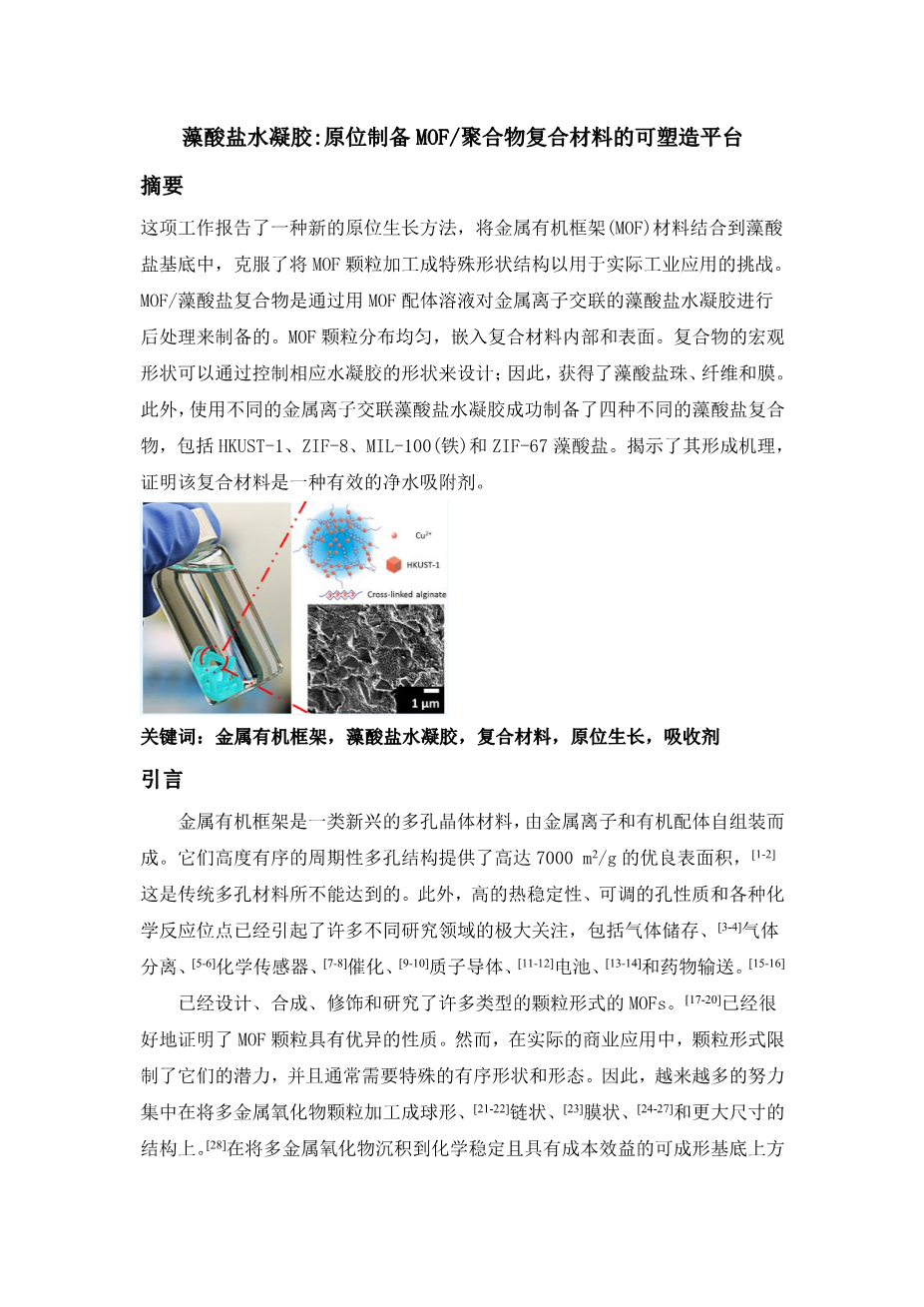 - 水凝胶在水体污染物吸附和废水处理中的应用外文翻译资料