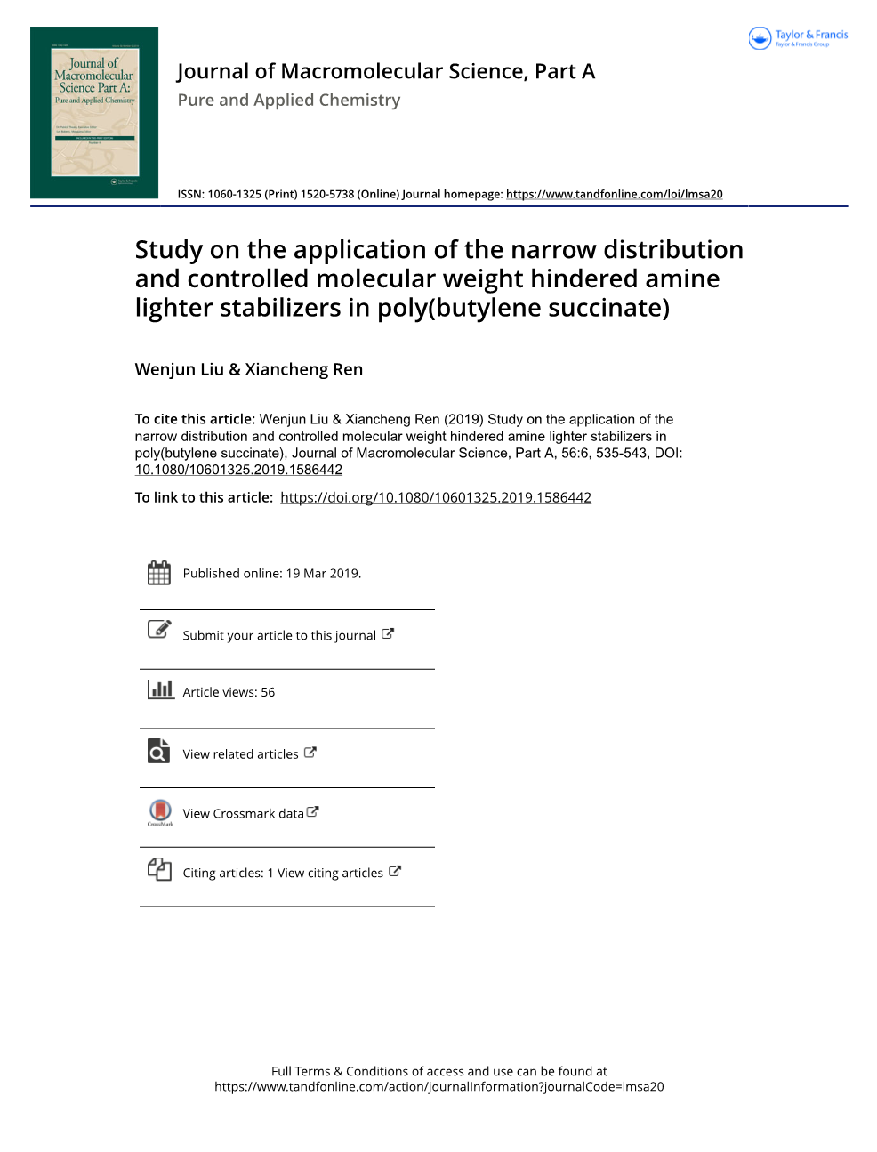 窄分布可控分子量受阻胺类轻质稳定剂在聚丁二酸丁二醇中的研究外文翻译资料