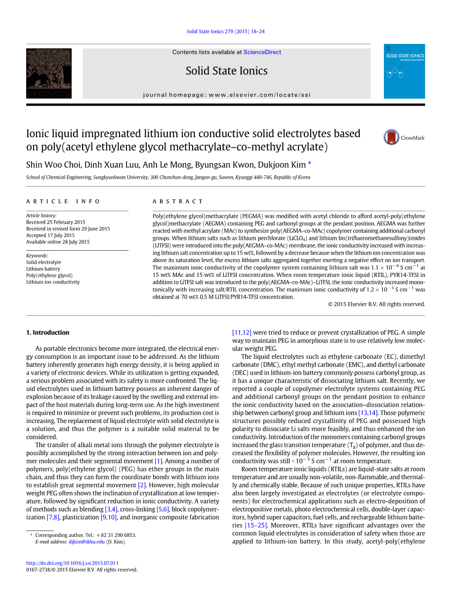 盐溶解了在聚合物中。 由于PEGMA本身同时含有环氧乙烷和羰基,它既具有节段运动,又具有离子解离芬克-因此具有离子传输能力。 在这种聚(AEGMA-coMAc)体系中,离子传输主要是通过柔性来完成的例如节段运动;然而,离子解离主要发生在极性羰基团体互动用锂盐。