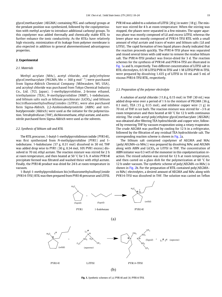 室温离子液体(RTILs)是室温下的液态盐,通常不挥发,不易燃, 热稳定和化学稳定。 由于这种独特的性能,RTILs也被广泛地研究为电化学应用的电解质(或电解质组分),如电沉积正电金属、光电化 学电池、双层电容器、混合超级电容器、燃料电池和可充电锂电池[15–25]。 此外,RTILs在应用于锂离子电池时,在安全性方面比普通液体电解质具有显著的优势。 在本研究中,乙酰-聚(乙烯