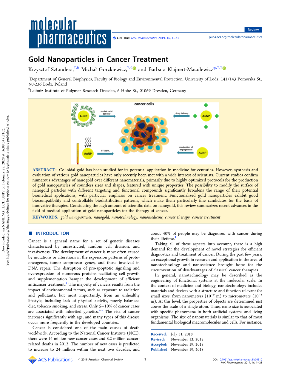 不同形状和大小的金纳米粒子在生物科学中的重要性继持续上升,因为它们的兼容性、反应性、改性的敏感性以及可调谐的光学特性。更重要的是,AuNPs 被证明是优良的治疗剂和药物载体。在这篇综述中,我们总结了关于在癌症治疗中使用 AuNPs 的可能性的现有数据,并强调了这一领域的最新成就。这里所包含的所有信息都是关于金纳米粒子本身的,而没有讨论它们与不同纳米结构的复合物的话题。