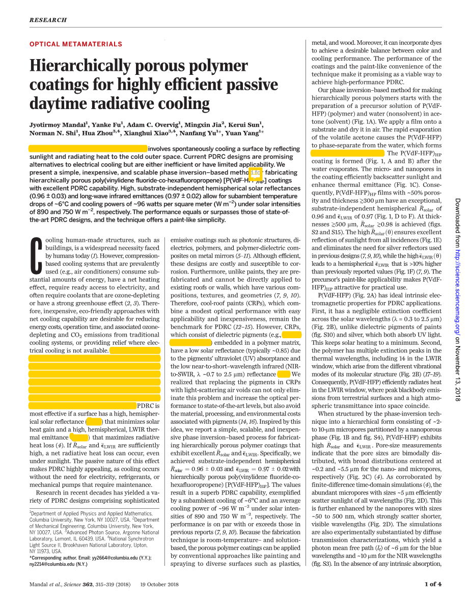 用于高效被动白天辐射降温的分层次多孔聚合物涂层
