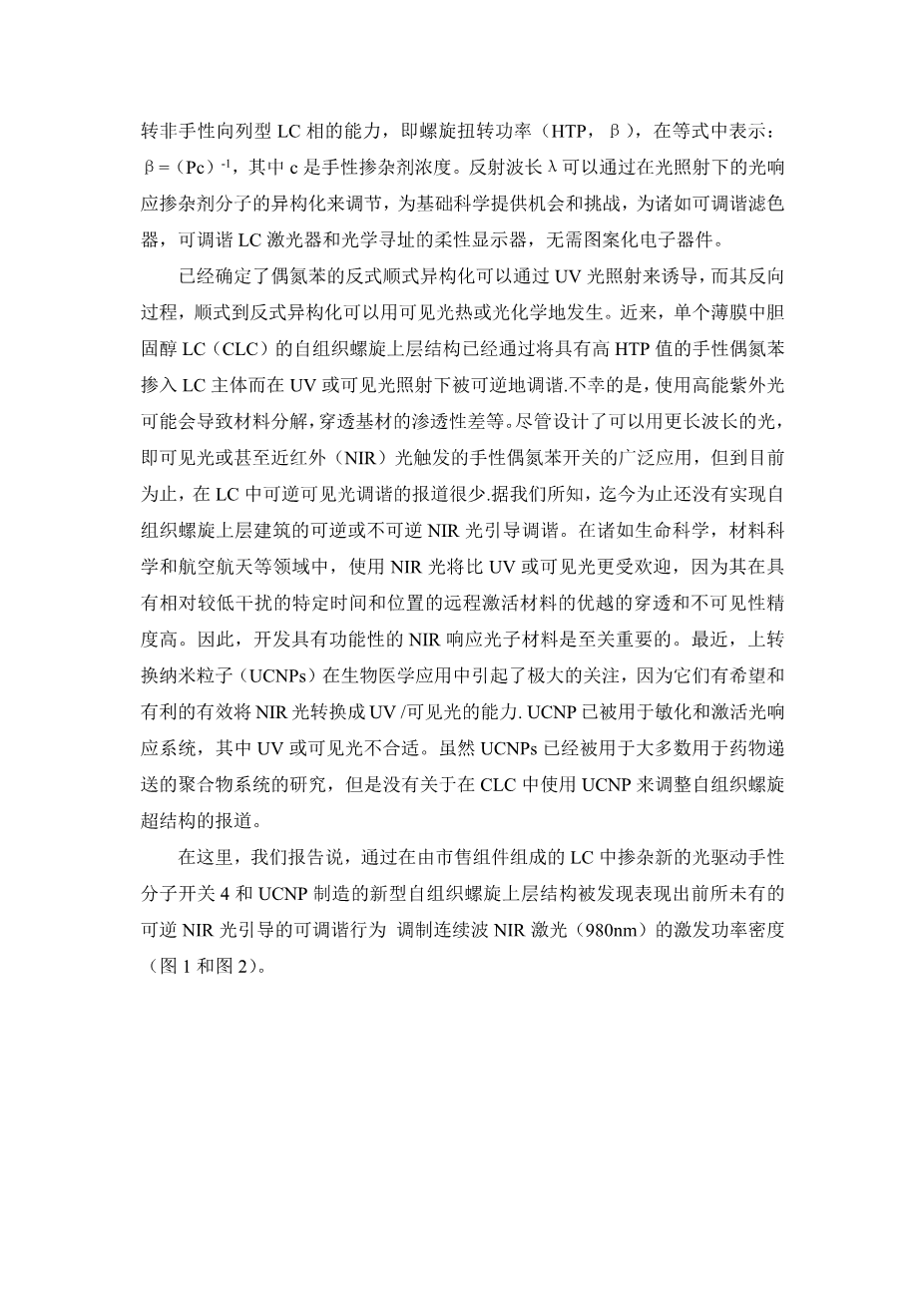 - 新型偶氮苯基两亲性共聚物:合成、自组装行为和多刺激响应特性外文翻译资料