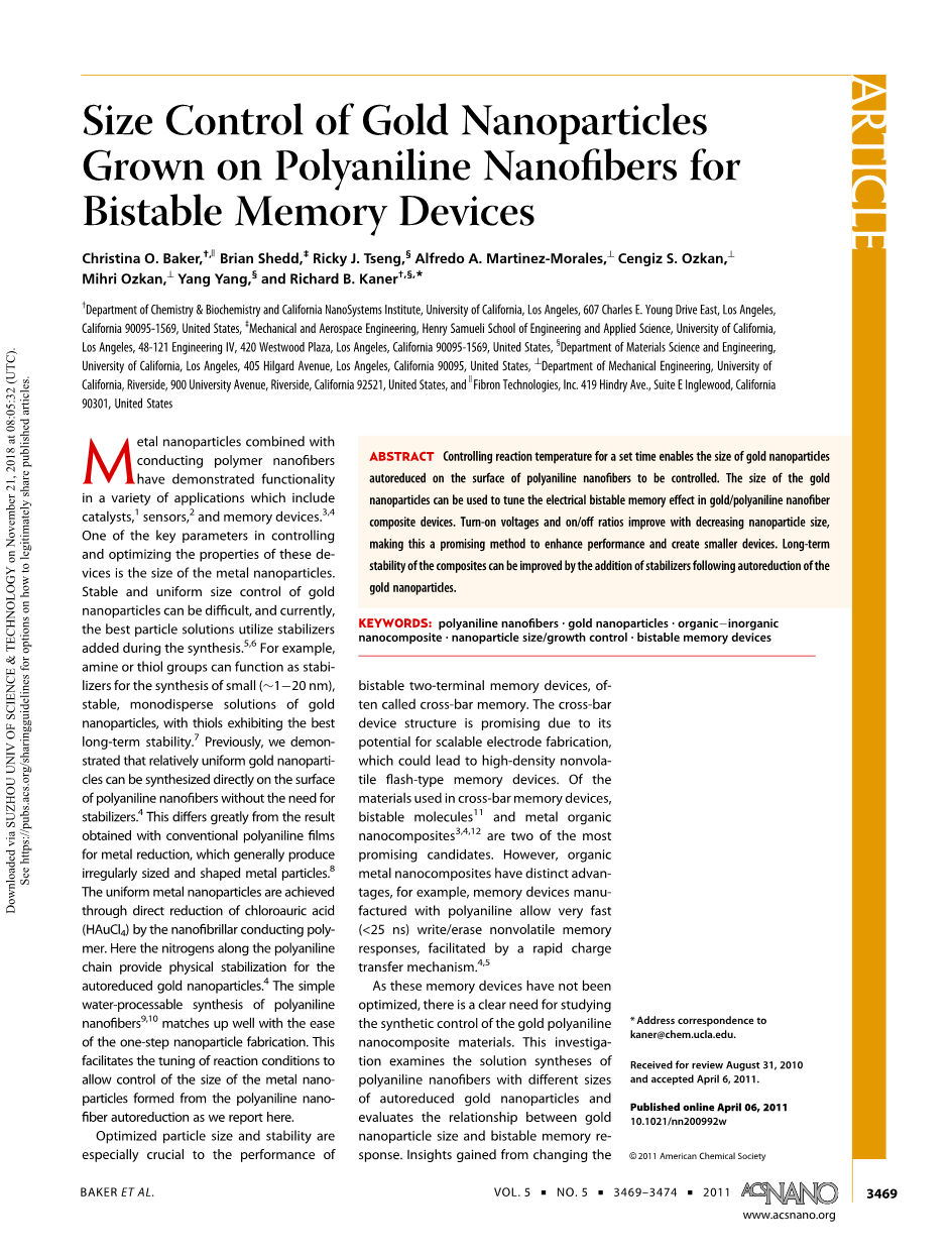 聚苯胺纳米纤维;金纳米粒子;有机无机物;纳米复合材料 ;纳米粒子尺寸/生长控制;双稳态存储器