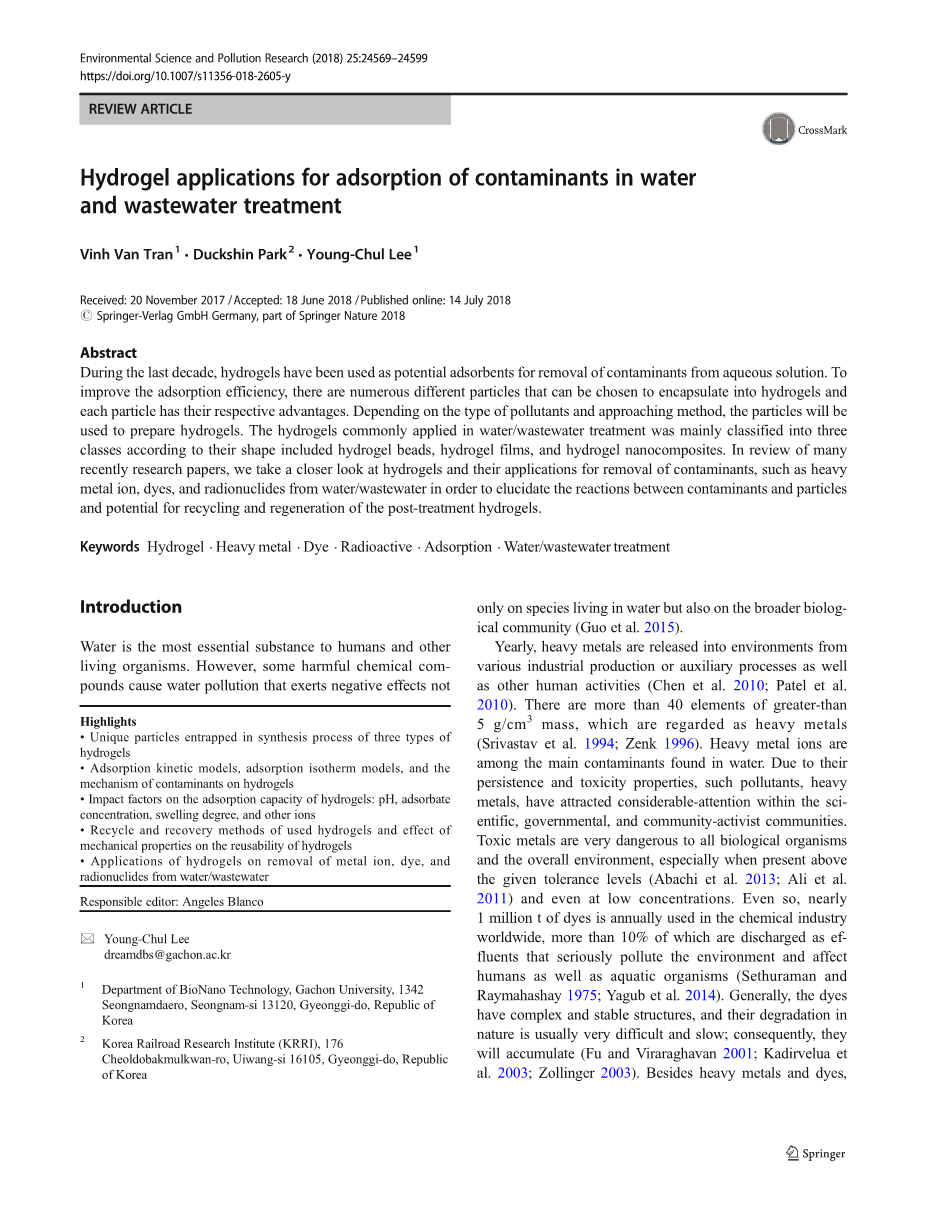 摘要:在过去的十年内,水凝胶作为吸附剂去除水溶液中污染物的极具潜力。为了提高吸附效率,可以将不同功能的粒子包覆于水凝胶中,并根据污染物的类型和制备方法,选择不同类型的粒子。常用于水/废水处理的水凝胶按其形状主要可以分为三类:水凝胶珠、水凝胶膜和水凝胶纳米复合材料。在查阅了大量最近相关的研究论文后,我们侧重研究了水凝胶及其在去除污染物方面的应用,包括水/废水中的重金属离子、染料和放射性核素的吸附,以阐明污染物和颗粒之间的反应机理以及后处理中水凝胶的回收与再生。