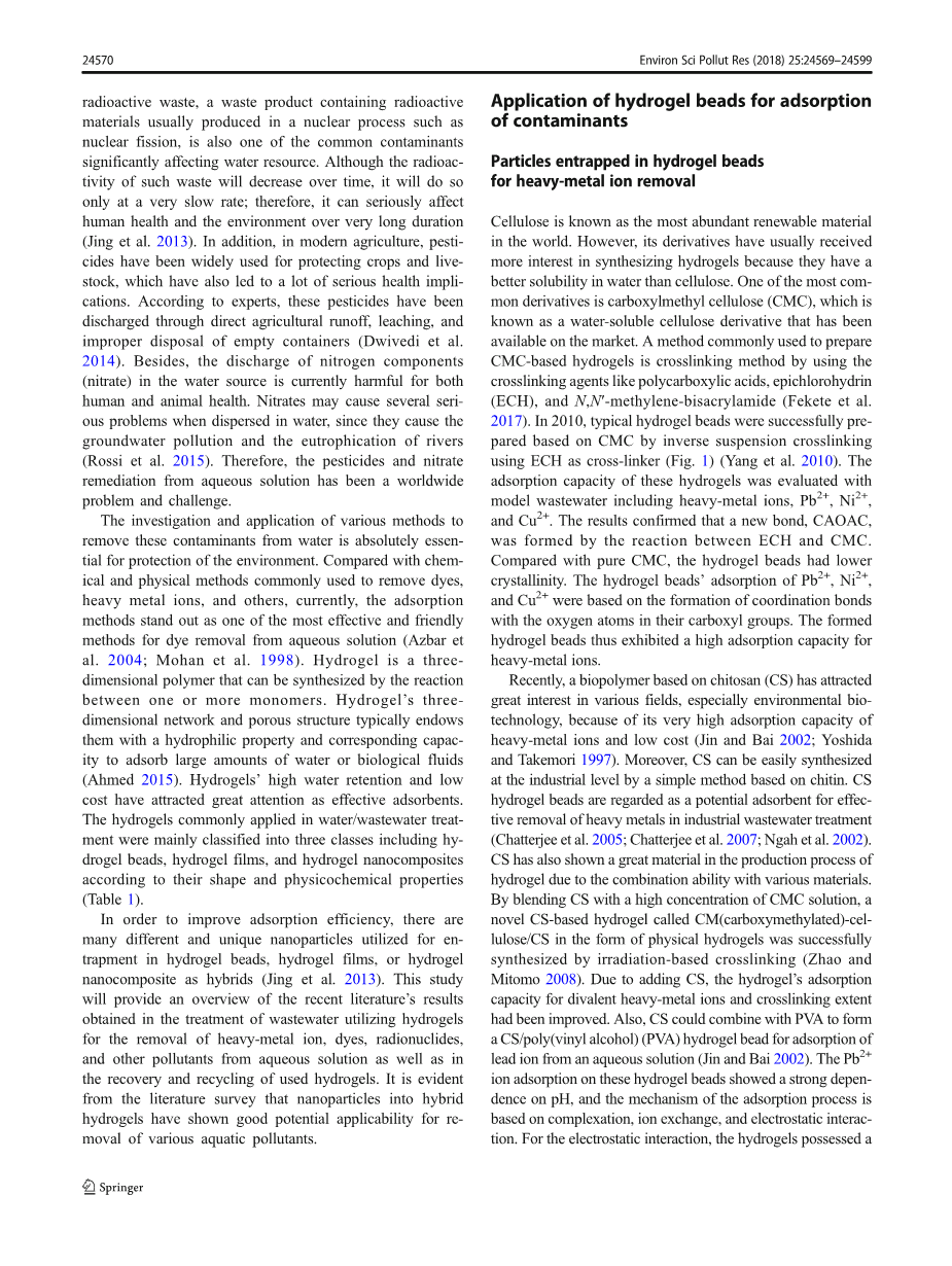 水凝胶在水体污染物吸附和废水处理中的应用外文翻译资料