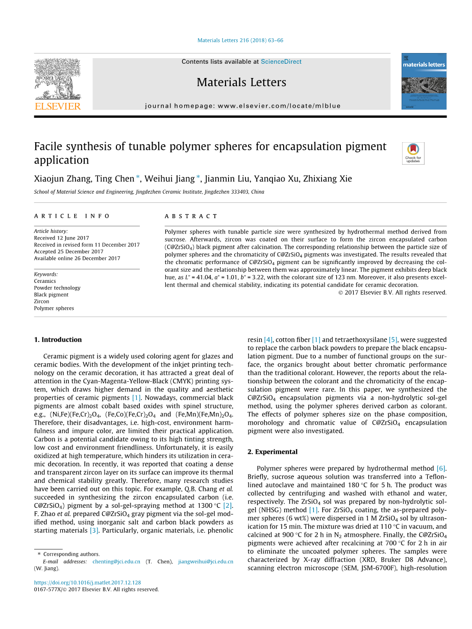 [1] T. Chen, X.J. Zhang, W.H. Jiang, et al., Synthesis and application of C@ZrSiO4 inclusion ceramic pigment from cotton cellulose as a colorant, J. Eur. Ceram. Soc. 36 (2016) 1811–1820.