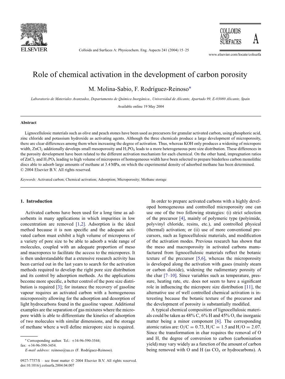 M. Molina-Sabio,F。Rodr#39;ıguez-Reinosolowast;