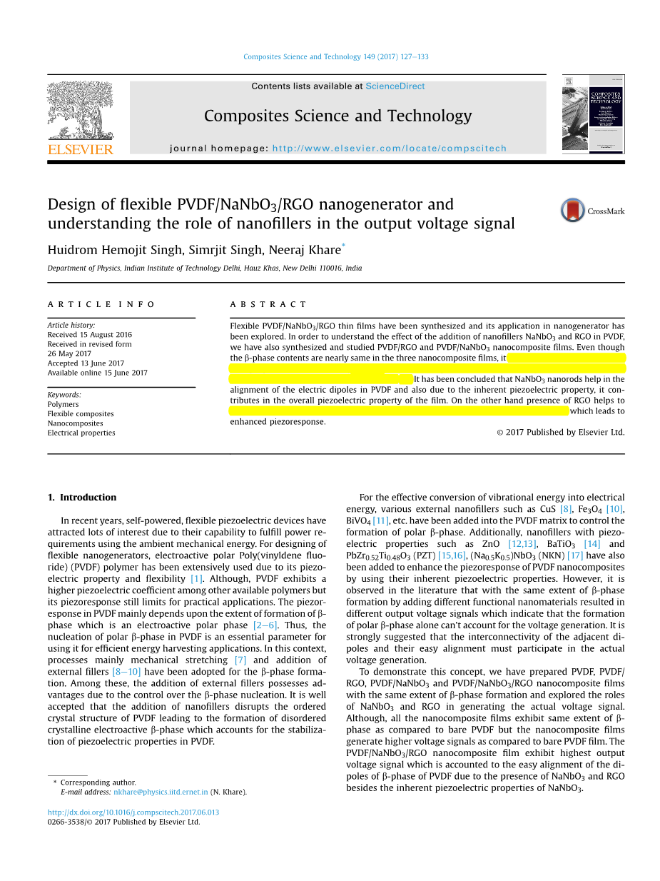 柔性PVDF/NaNbO3/RGO纳米发电机的设计与纳米填料在电压输出中的作用