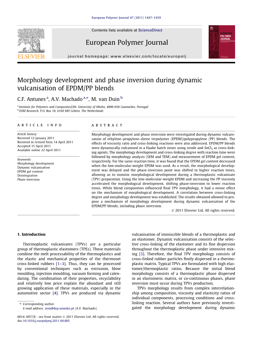 动态硫化PP/POE热塑性弹性体的制备及性能研究外文翻译资料