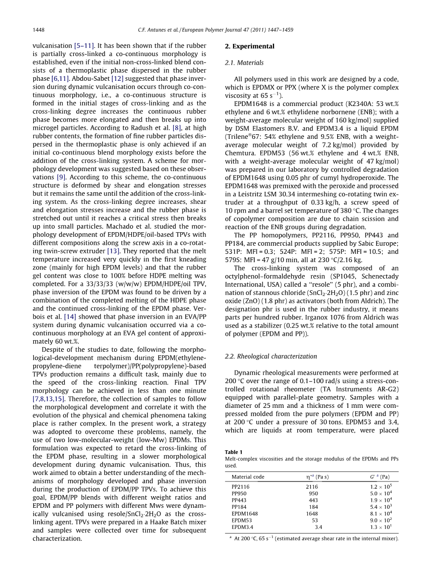 考虑到这些结果,我们在添加交联系统的情况下,对这种混合物在动态硫化过程中的形态学发展机理进行了两次(0和90 s)研究。由于未观察到交联程度和形态学发展上的显著差异,因此在制备所有热塑性弹性体时在0 s就加入了交联系统。