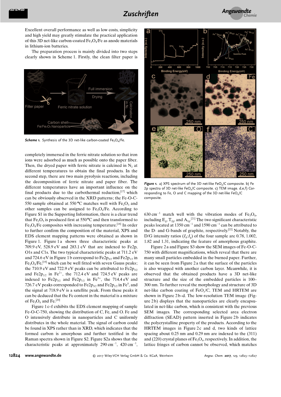 与碳纳米管和石墨烯相比,在碳/TMO复合材料中,从碳源形成的3D网状结构具有更多的优势,这些材料结合了2D和3D结构改进后的性能[8]。在这些结构中,TMO纳米颗粒表面上的碳涂层就像网状外壳,可以减少金属氧化物颗粒在充电/放电过程中的粉碎和溶解[9].此外,碳壳可以显着提高电导率并促进离子的扩散,这有利于TMOs的速率性能[4c,10]。通常壳体可能具有更高的TMO复合材料覆盖率,碳在电子转移中起到3D集电器的作用[11]。金属有机骨架(MOFs)[12],明胶[13],有机配合物[14]和其他化合物[15]被用作为构建三维结构的碳源。考虑到商业用途,一些天然碳源,如再生纤维素纤维[15a],木材[15b]和小龙虾壳[3b]更容易获得且具有成本效益。纸是天然碳的极好来源,富含纤维素,有助于形成三维结构。例如,滤纸成本低,来源广,表面含有多羟基基团,是一种实用的候选物[16]。