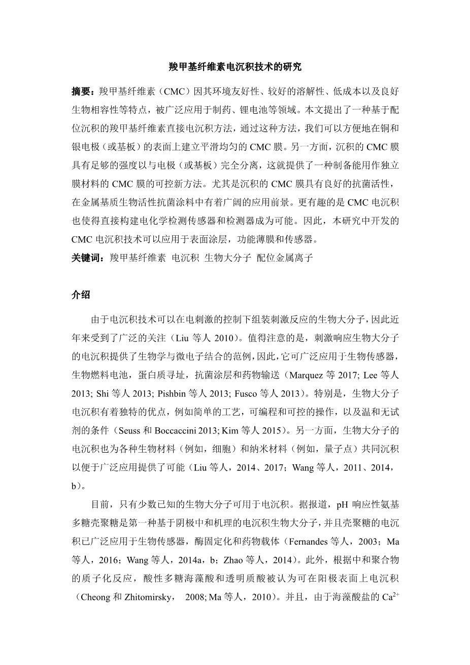 - 半互穿壳聚糖/离子液体聚合物网络作为伤口敷料和离子电渗透材料的应用研究外文翻译资料