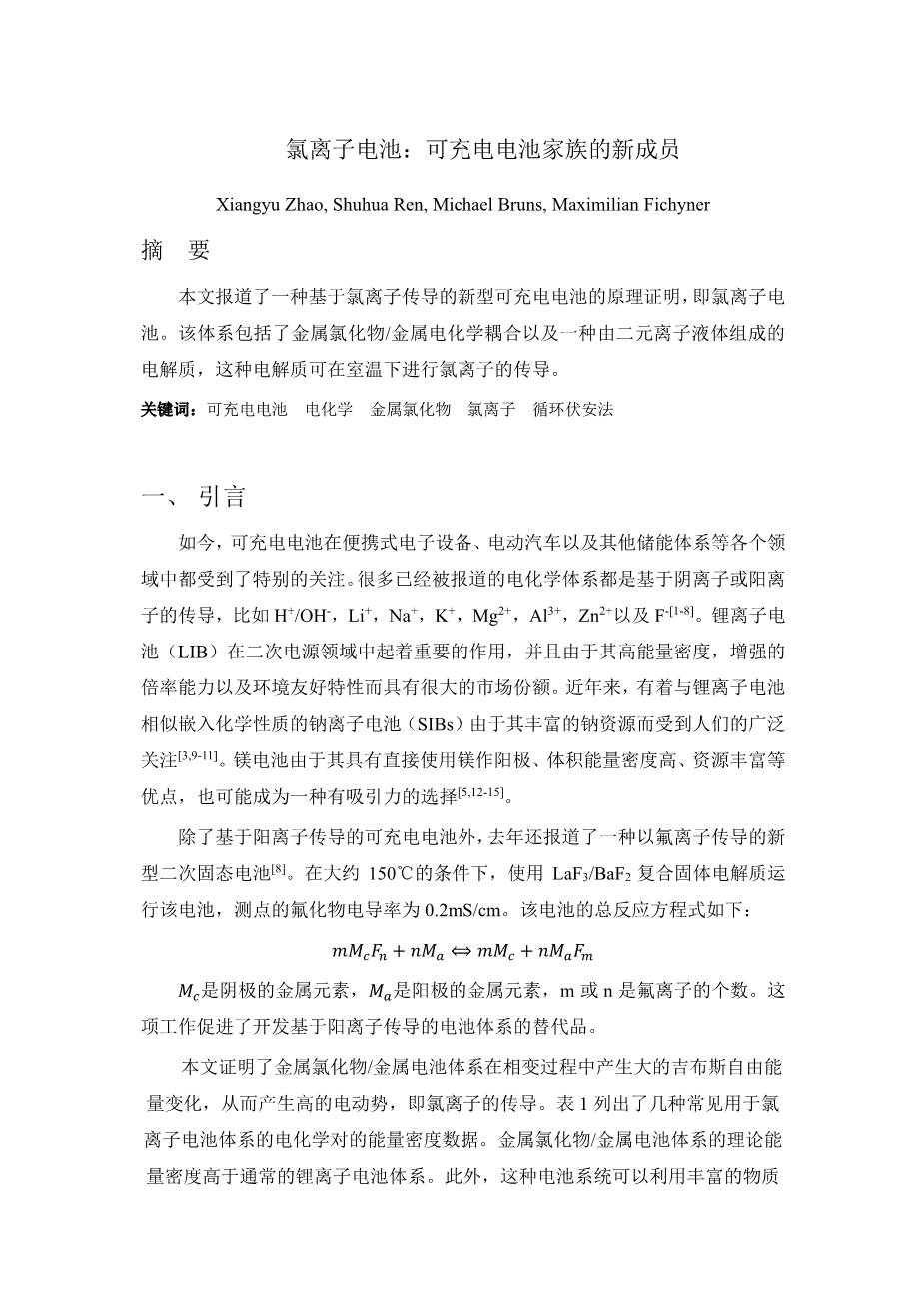 - 氯离子电池:可充电电池家族的新成员外文翻译资料