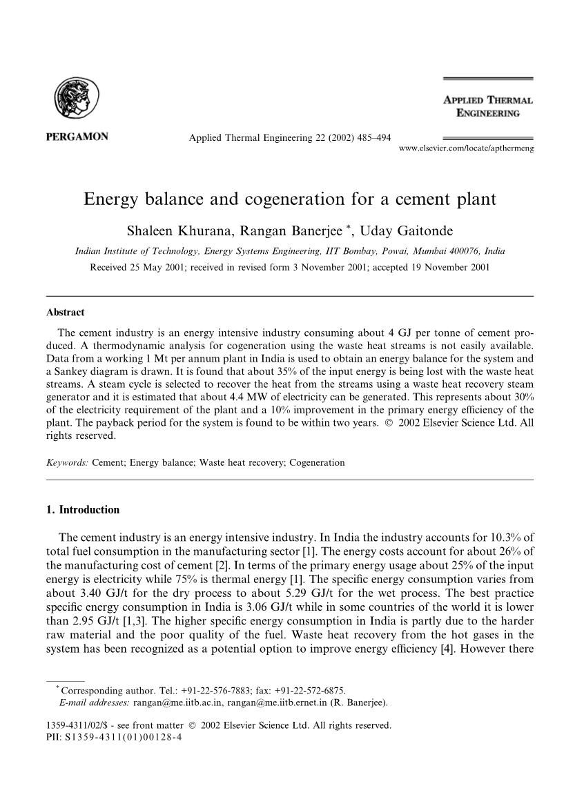 Shaleen Khurana, Rangan Banerjee *, Uday Gaitonde