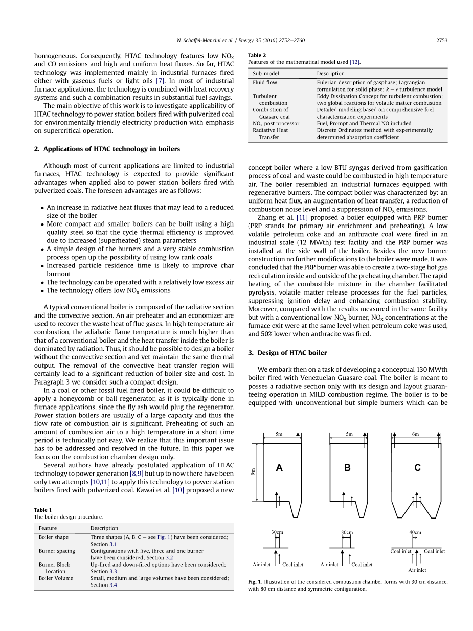 一些作者已经实验使用HTAC技术的发电厂[8,9],但仅有两次尝试[10,11]将该技术应用于用粉煤燃烧的电站锅炉。Kawai等人[10]提出了一种新概念锅炉,其中煤和废物的气化过程衍生的低BTU合成气可在高温下燃烧空气。 锅炉类似于装有蓄热式燃烧器的工业炉。小型锅炉的特点是:均匀的热通量,传热的增加,燃烧噪音水平的降低和NOx排放的抑制。