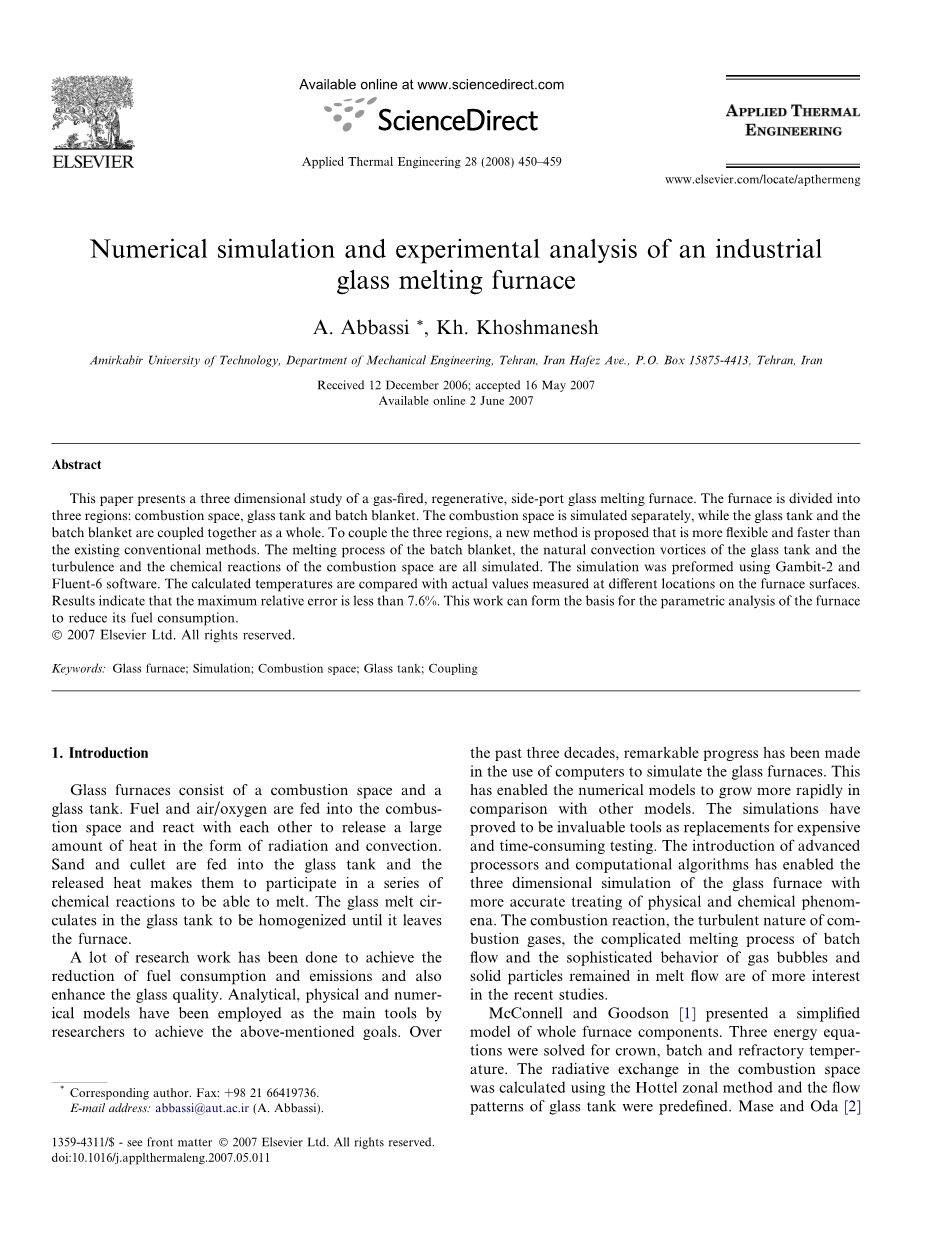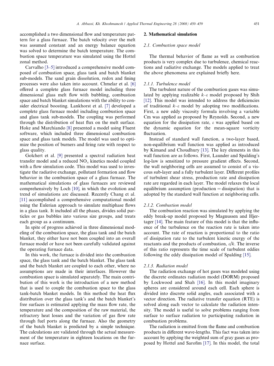 为了实现这一目标,已经做了大量的研究工作减少燃料消耗和排放,也提升了玻璃质量。基于分析的,物理和数值模型已被用作主要工具来帮助研究人员实现上述目标。过去三十年来,取得了显著进展在使用电脑来模拟玻璃熔窑。这个确保数值模型的增长速度比其他模型更快。模拟被证明是非常有价值的工具,能够替代昂贵和耗时的测试。先进的处理器和计算算法确保玻璃熔窑的三维模拟更准确地处理物理和化学现象。燃烧反应,燃烧的湍流性质玻璃的复杂熔化过程和气泡的复杂行为在最近的研究中熔体流动中的固体颗粒更受关注
