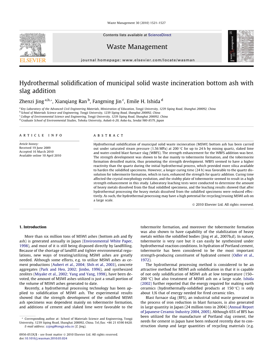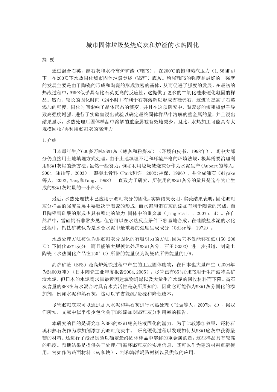 垃圾焚烧飞灰水热固化行为研究外文翻译资料