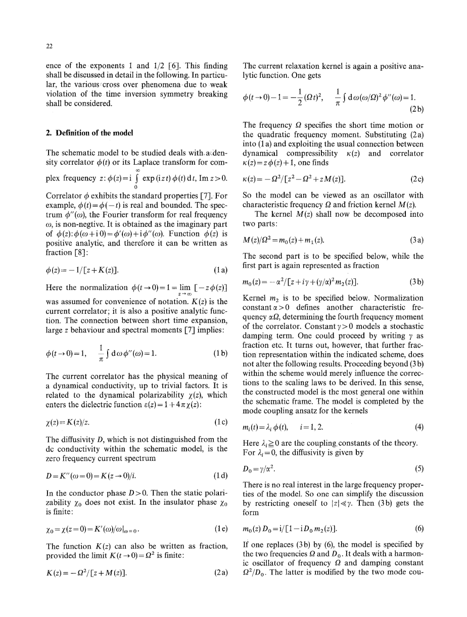 考虑到(1,5-7)作为模型的定义,我们正在讨论一个放松器。对于 ,相关器读取]。我们可以看出等式(2 b)是无效的,这是因为短时渐近式读取,模式耦合内核将会按照指示将修改为m ( z ) 。