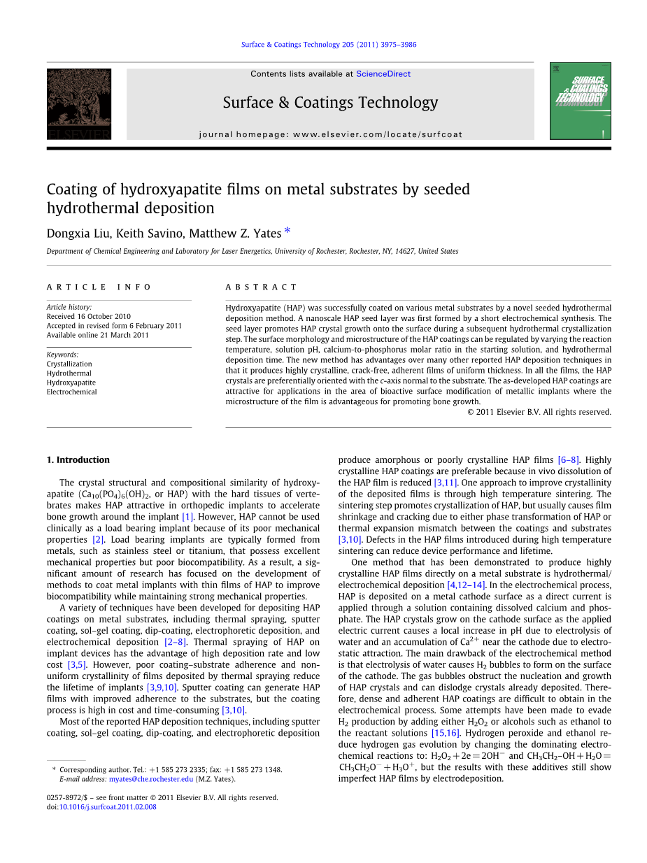 水热沉积法在金属基底上制备羟基磷灰石涂层外文翻译资料