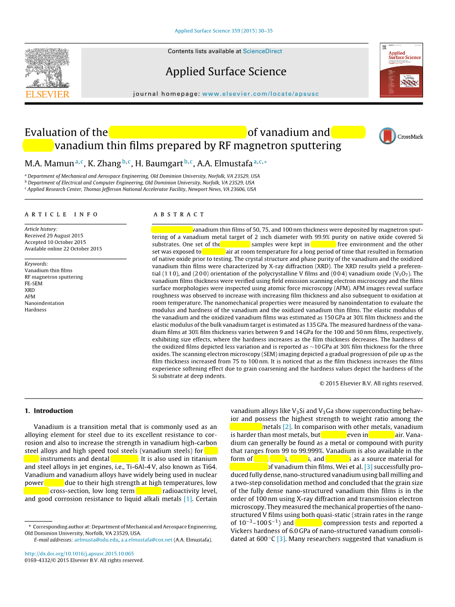 厚度分别为50纳米、75纳米、100纳米的多晶钒薄膜的沉积是在天然氧化物覆盖的硅基板上的进行的,这个过程是利用纯度为99.9%的直径为2英寸的钒金属靶材进行磁