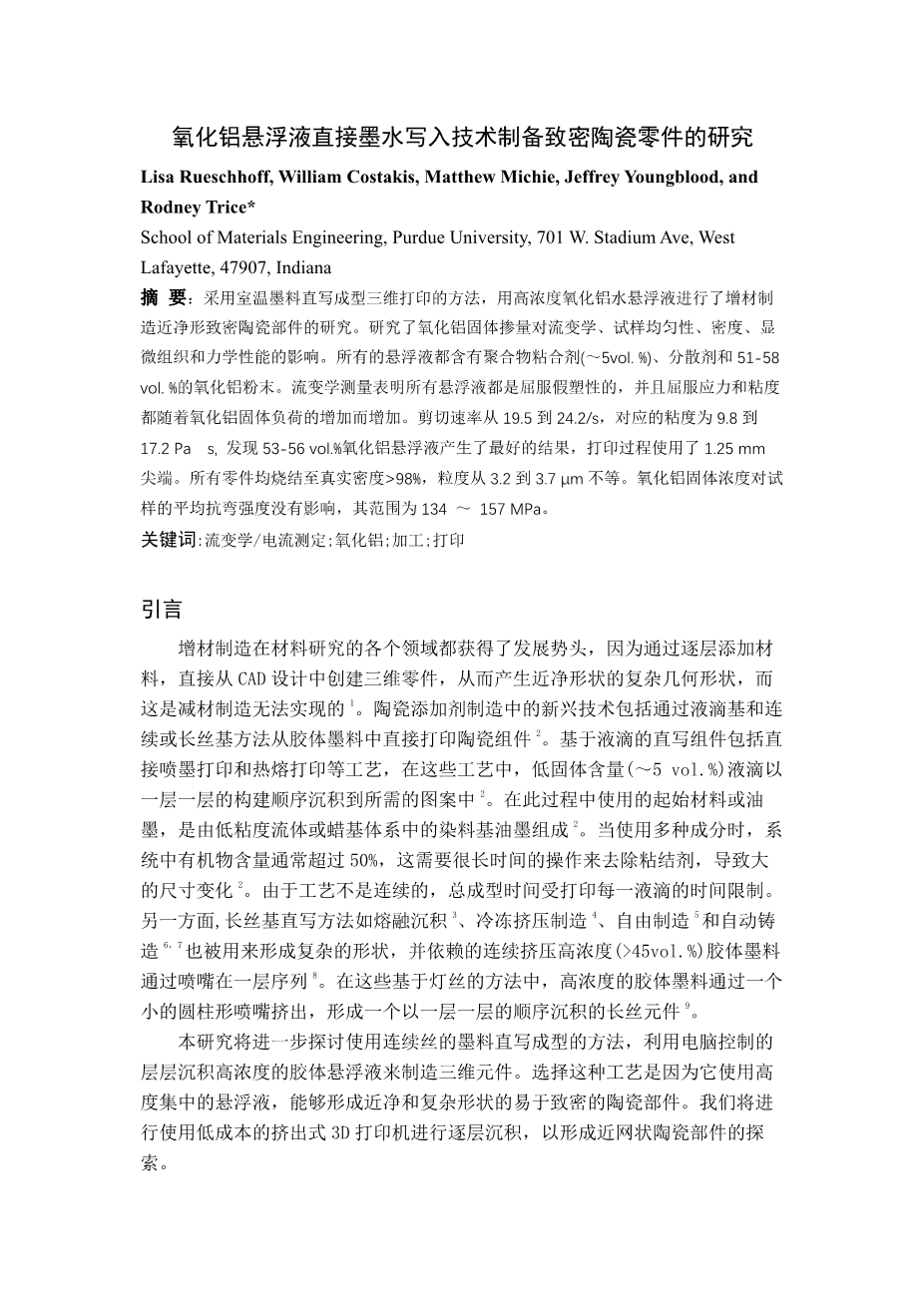 氧化铝悬浮液直接墨水写入技术制备至密陶瓷零件的研究外文翻译资料 2022-08-03 14:35:14 英语原文共 10 页,剩余内容已隐藏,支付完成后下载完整资料 英语译文共 15 页,剩余内容已隐藏,支付完成后下载完整资料 资料编号:[265922],资料为PDF文档或Word文档,PDF文档可免费转换为Word 原文和译文剩余内容已隐藏,您需要先支付 30元 才能查看原文和译文全部内容!立即支付 发小红书推广免费获取该资料资格。点击链接进入获取推广文案即可: Ai一键组稿 | 降AI率 | 降重复率 | 论文一键排版 PREVIOUS NEXT 您可能感兴趣的文章 纤维截面单元预应力空心混凝土(PHC)桩抗震性能研究的数值模型外文翻译资料 预拌混凝土质量评估中的实验室间比较试验外文翻译资料 矿渣水泥预拌混凝土性能研究外文翻译资料 低水泥含量矿渣桩的特性外文翻译资料 将混凝土废浆作为补充水泥材料的回收方法:选定元素的表征、应用和浸出外文翻译资料 预应力混凝土结构中的尺度效应:避免脆性破坏的最大配筋率外文翻译资料 利用再生粗骨料和机制砂增强混凝土性能的技术外文翻译资料 丁苯橡胶胶乳改性再生骨料透水混凝土研究外文翻译资料 沥青混凝土混合料永久变形预测的综合研究外文翻译资料 矿物掺合料对低质量再生骨料混凝土的影响外文翻译资料