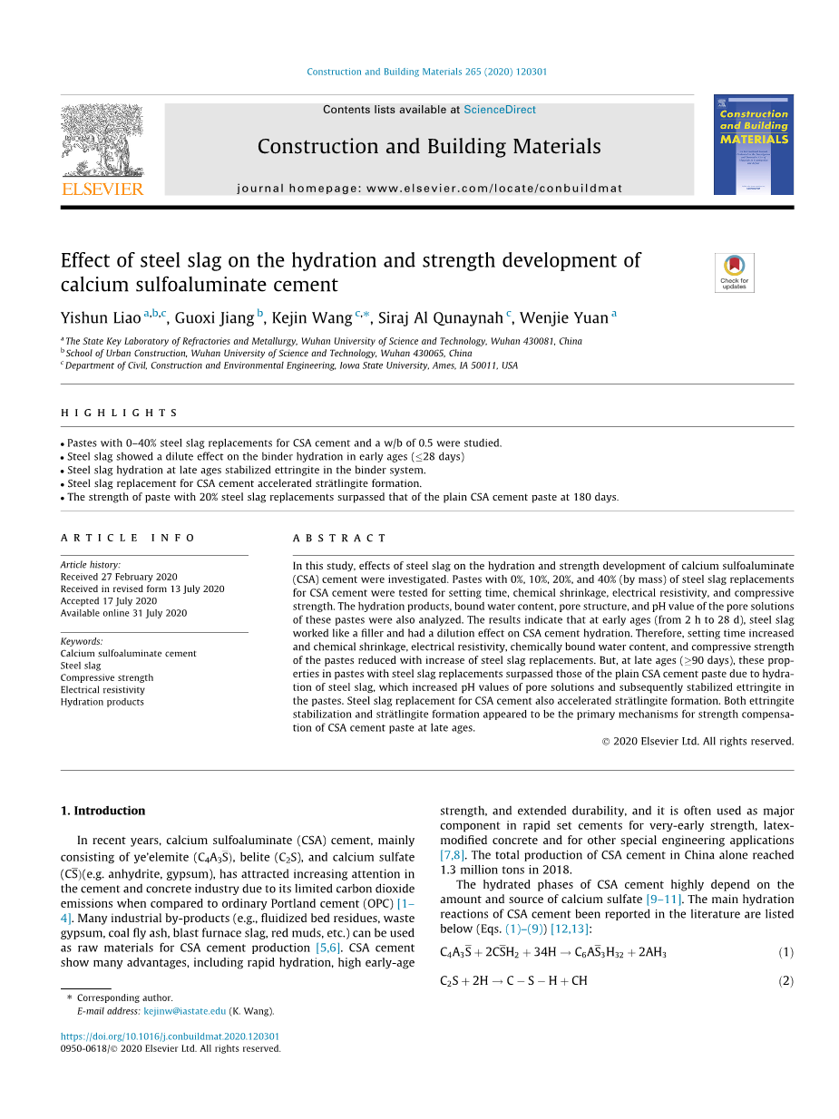 钢渣对硫铝酸钙水泥水化及强度发展的影响外文翻译资料