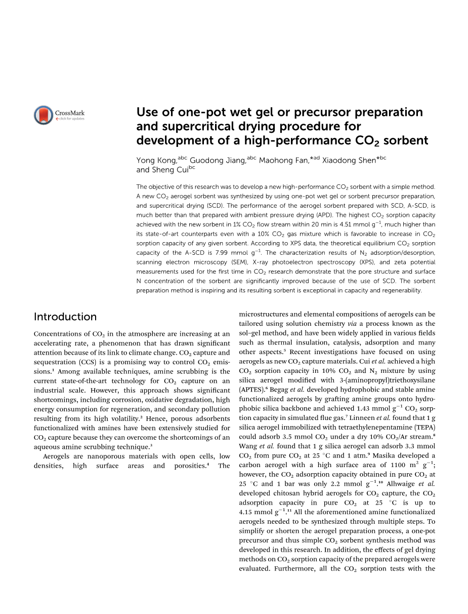 Yong Kong,abc Guodong Jiang,abc Maohong Fan,*ad Xiaodong Shen*bc and Sheng Cuibc