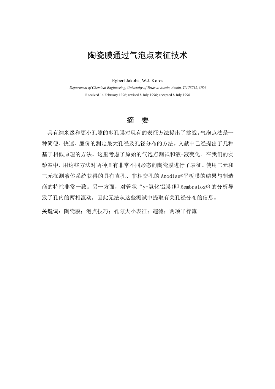 陶瓷膜通过气泡点表征技术外文翻译资料 2023-04-05 20:39:36 英语原文共 11 页,剩余内容已隐藏,支付完成后下载完整资料 英语译文共 18 页,剩余内容已隐藏,支付完成后下载完整资料 资料编号:[590563],资料为PDF文档或Word文档,PDF文档可免费转换为Word 原文和译文剩余内容已隐藏,您需要先支付 30元 才能查看原文和译文全部内容!立即支付 发小红书推广免费获取该资料资格。点击链接进入获取推广文案即可: Ai一键组稿 | 降AI率 | 降重复率 | 论文一键排版 PREVIOUS NEXT 您可能感兴趣的文章 纤维截面单元预应力空心混凝土(PHC)桩抗震性能研究的数值模型外文翻译资料 预拌混凝土质量评估中的实验室间比较试验外文翻译资料 矿渣水泥预拌混凝土性能研究外文翻译资料 低水泥含量矿渣桩的特性外文翻译资料 将混凝土废浆作为补充水泥材料的回收方法:选定元素的表征、应用和浸出外文翻译资料 预应力混凝土结构中的尺度效应:避免脆性破坏的最大配筋率外文翻译资料 利用再生粗骨料和机制砂增强混凝土性能的技术外文翻译资料 丁苯橡胶胶乳改性再生骨料透水混凝土研究外文翻译资料 沥青混凝土混合料永久变形预测的综合研究外文翻译资料 矿物掺合料对低质量再生骨料混凝土的影响外文翻译资料