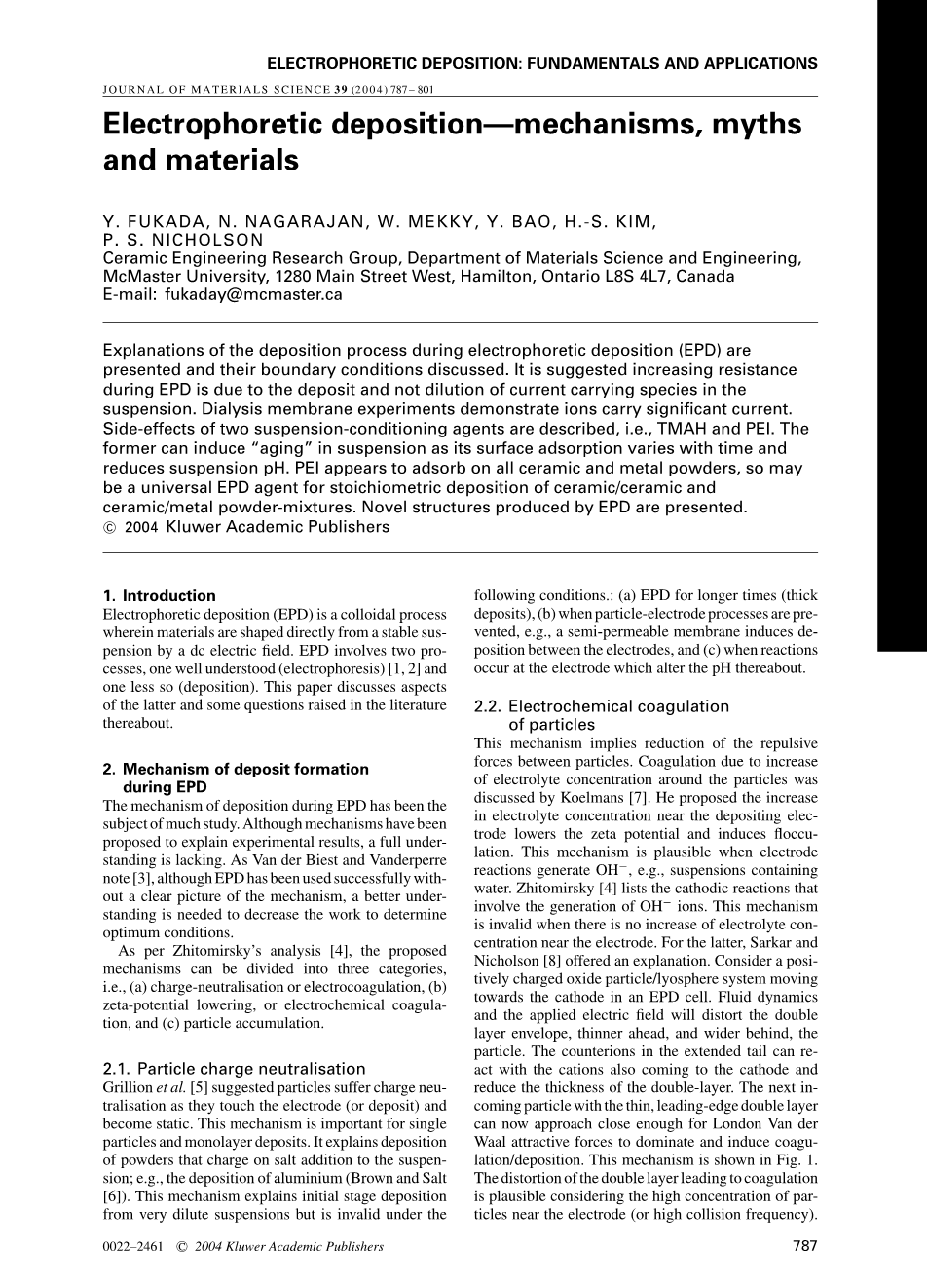 Y. FUKADA, N. NAGARAJAN, W. MEKKY, Y. BAO, H.-S. KIM,P. S. NICHOLSON