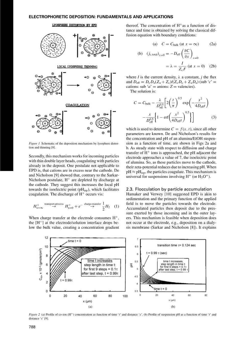 异凝首先是由Derjaguin考虑的DLVO理论,后来由Hogg等人简化。在最近的一篇论文中,Wang和Nicholson研究了铝和镁硅在乙醇中的异质和同质凝固。他们证明了改变悬浮液的酸度会产生无数的杂凝结构。他们用透射电子显微镜观察了二元悬浮液的结构形成。图13a为凝固的氧化铝-硅颗粒,图13b为镁硅颗粒。一旦一个相完全包围了另一个相的粒子,混合物EPD就像前者一样。