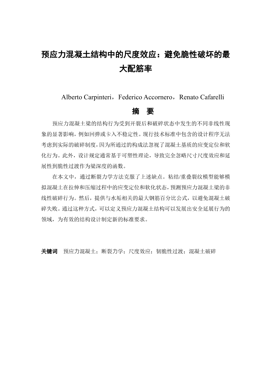 预应力混凝土结构中的尺度效应:避免脆性破坏的最大配筋率外文翻译资料