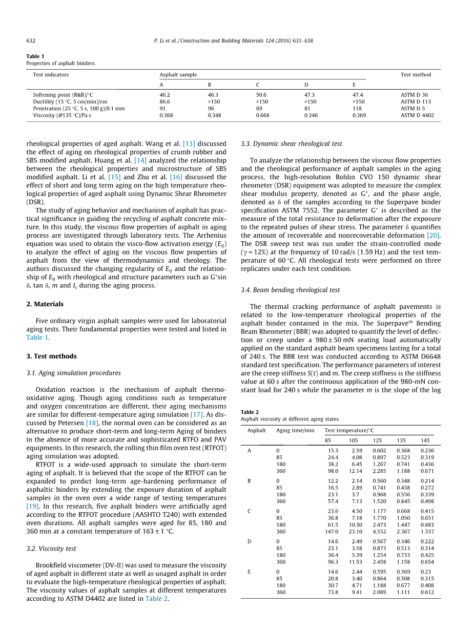 五个普通的原始沥青样品用于实验室老化测试。 他们的基本属性经过测试并列入表格1。