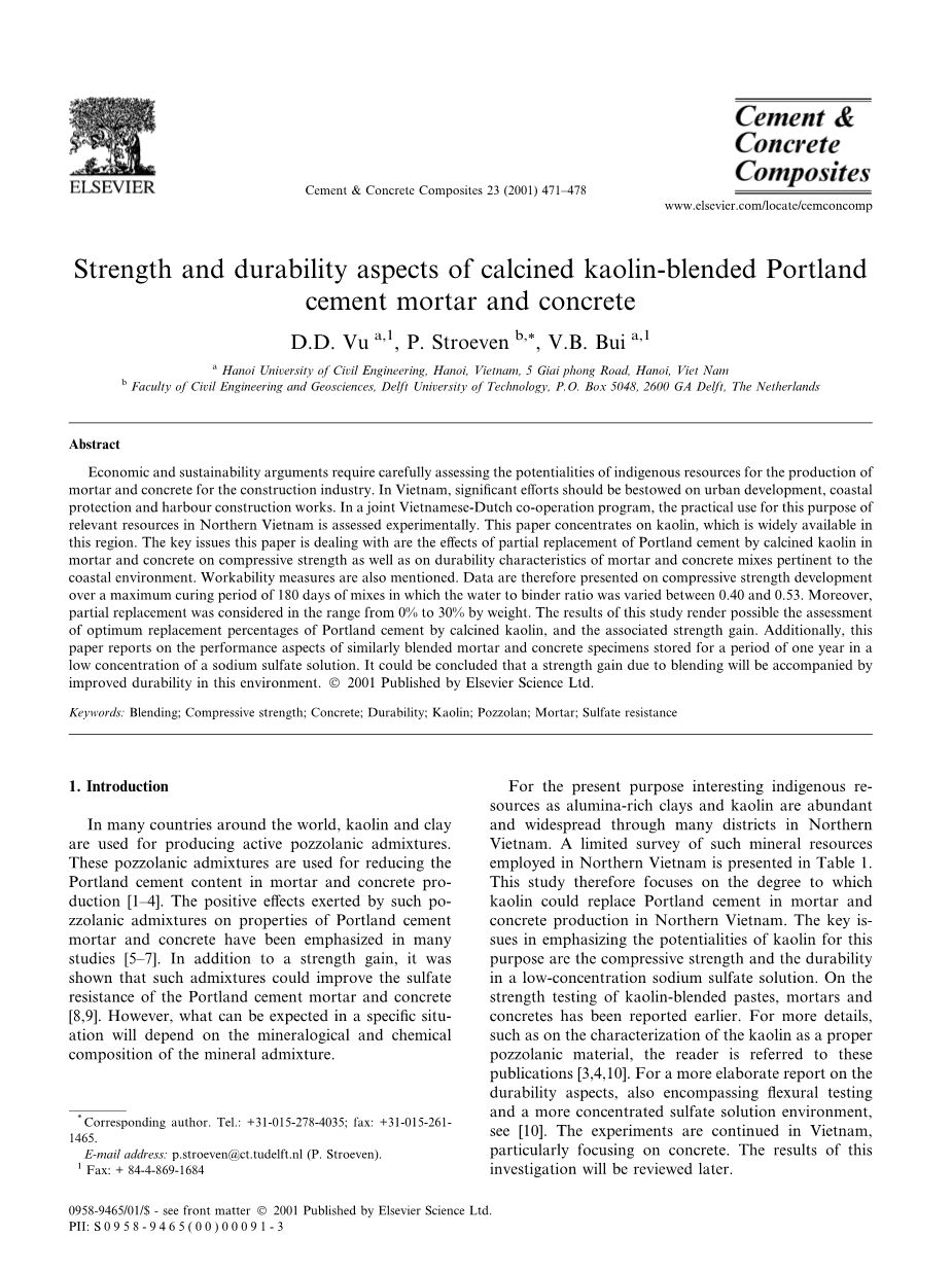 基于经济和可持续性的论点,我们需要认真评估当地的资源做为建筑业生产砂浆和混凝土的原材料潜力。对于越南来说,应在城市发展、海岸保护和港口建设等方面作出重大努力。在越南-荷兰联合合作项目中,我们对越南北部相关资源的实际使用情况进行了实验评估。本文以高岭土为研究对象,高岭土在该地区广泛分布。本文研究的关键问题是煅烧高岭土在砂浆和混凝土中部分替代硅酸盐水泥对砂浆和混凝土混合料抗压强度以及近海环境下的水泥耐久性特性的影响,还提到了可操作性措施。因此,本文提供了水灰比在0.40至0.53之间的混合料,在最大180天养护期的抗压强度发展的数据。此外,我们设计的实验中煅烧高岭土替代水泥质量的0%到30%的。研究结果为评估烧高岭土对硅酸盐水泥的最佳替代率提供了可能,并且会伴随着强度的增益。此外,本文还给出了在低浓度硫酸钠溶液中保存一年的与掺偏高岭土类似的砂浆和混凝土试件的相关性能。可以得出的结论是,在这种环境下,煅烧高岭土的部分替代不仅增加了强度也提高了其耐久性。