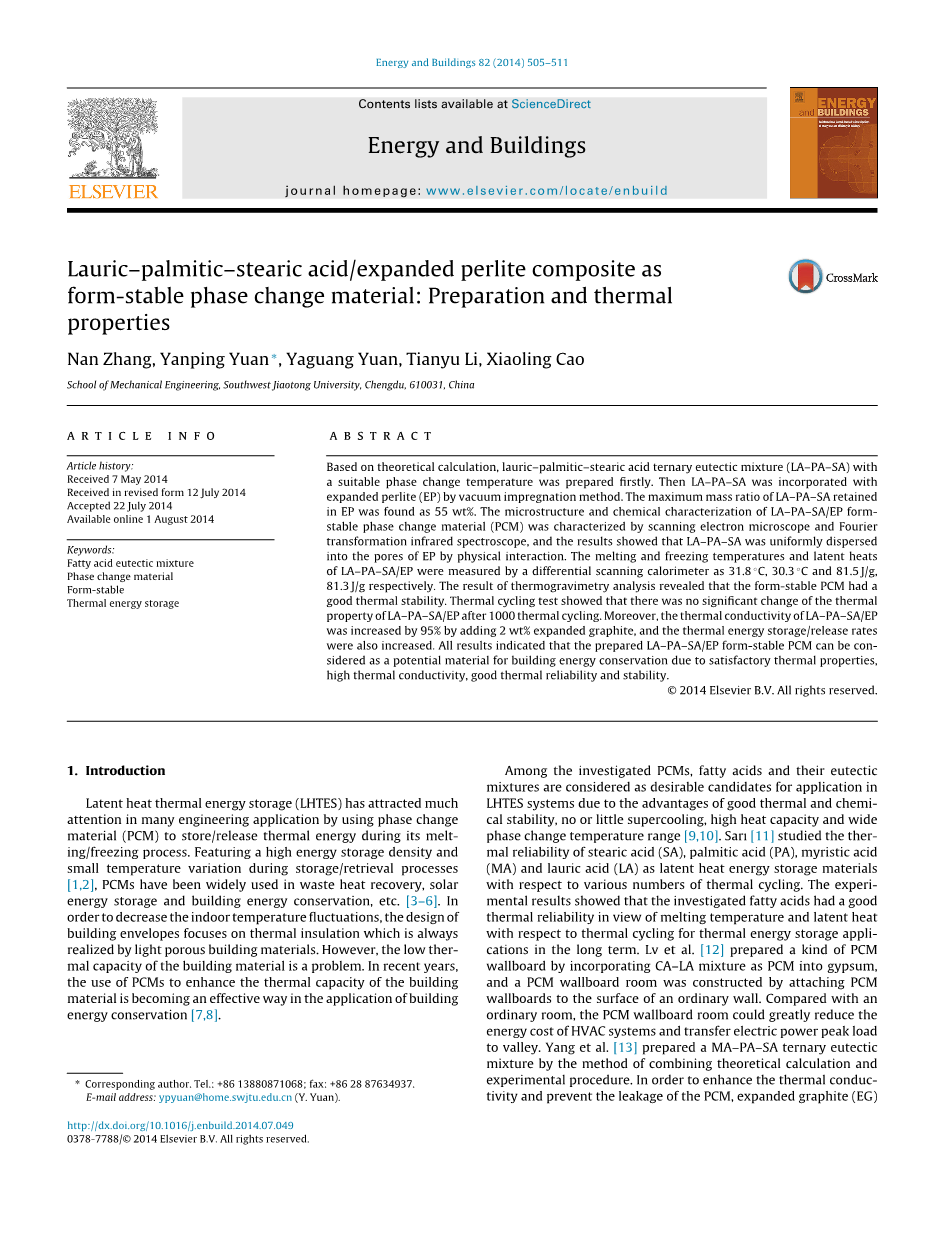 月桂酸-棕榈酸-硬脂酸/膨胀珍珠岩定形复合相变储能材料的制备及性能外文翻译资料