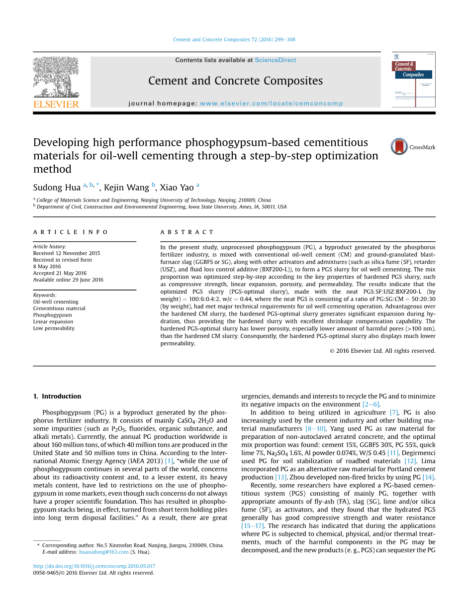 用于油气田固井高性能磷石膏基胶凝材料的制备和优化方法外文翻译资料