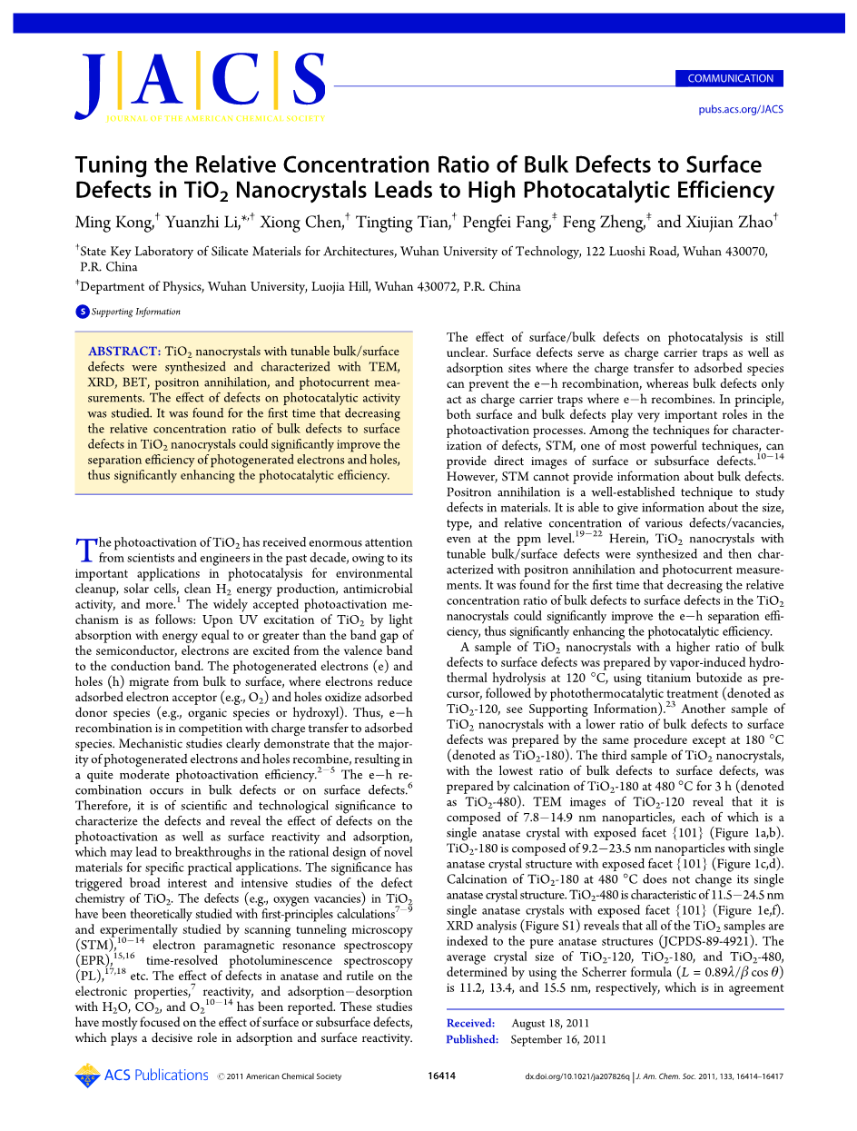 调整TiO2纳米晶体中体缺陷与表面缺陷的相对浓度比导致光催化效率提高外文翻译资料