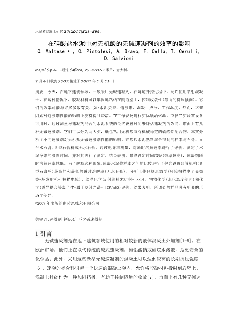 聚羧酸水泥体系混凝土的液体速凝剂研究外文翻译资料 2022-03-18 22:39:01 英语原文共 9 页,剩余内容已隐藏,支付完成后下载完整资料 英语译文共 23 页,剩余内容已隐藏,支付完成后下载完整资料资料编号:[470016],资料为PDF文档或Word文档,PDF文档可免费转换为Word 原文和译文剩余内容已隐藏,您需要先支付 30元 才能查看原文和译文全部内容!立即支付 发小红书推广免费获取该资料资格。点击链接进入获取推广文案即可: Ai一键组稿 | 降AI率 | 降重复率 | 论文一键排版 PREVIOUS NEXT 您可能感兴趣的文章 纤维截面单元预应力空心混凝土(PHC)桩抗震性能研究的数值模型外文翻译资料 预拌混凝土质量评估中的实验室间比较试验外文翻译资料 矿渣水泥预拌混凝土性能研究外文翻译资料 低水泥含量矿渣桩的特性外文翻译资料 将混凝土废浆作为补充水泥材料的回收方法:选定元素的表征、应用和浸出外文翻译资料 预应力混凝土结构中的尺度效应:避免脆性破坏的最大配筋率外文翻译资料 利用再生粗骨料和机制砂增强混凝土性能的技术外文翻译资料 丁苯橡胶胶乳改性再生骨料透水混凝土研究外文翻译资料 沥青混凝土混合料永久变形预测的综合研究外文翻译资料 矿物掺合料对低质量再生骨料混凝土的影响外文翻译资料