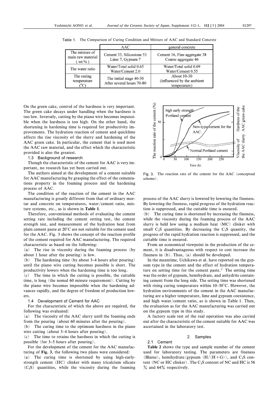用于制造AAC时,在温度,水/水泥比,混合体系等方面,水泥的反应条件与普通砂浆和混凝土大不相同,如表1所示。