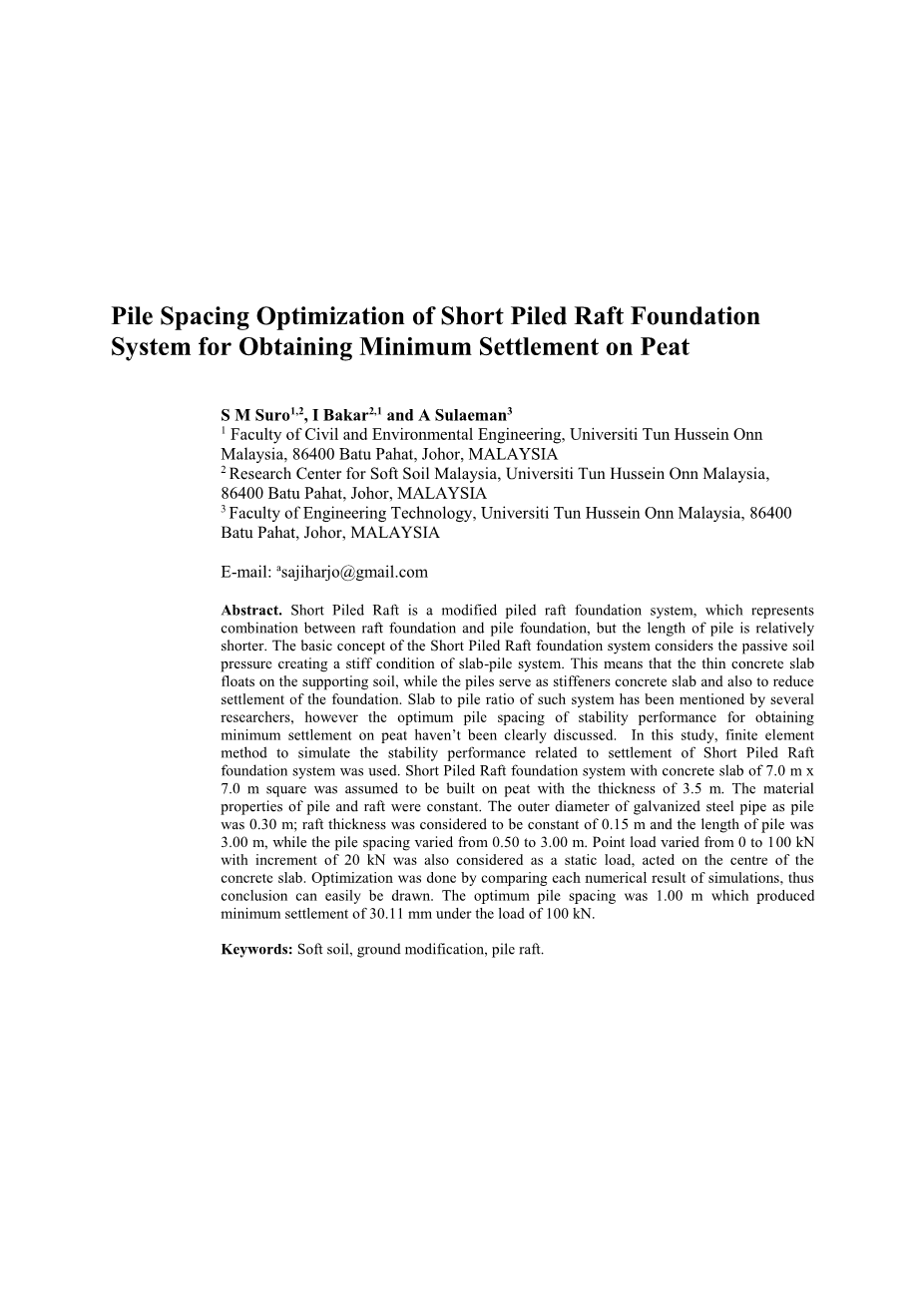 2马来西亚软土研究中心,马来西亚Tun Hussein Onn大学,86400 Batu Pahat, Johor,马来西亚